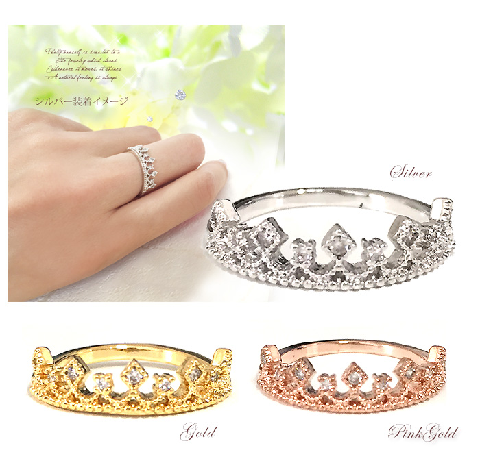 大人可愛いデザイン。ワンランク上の華奢クラウンCZリング 0776