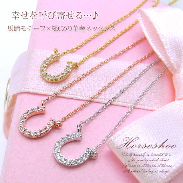幸せを呼び寄せる…♪馬蹄モチーフ×総CZの華奢チェーンネックレス 0827