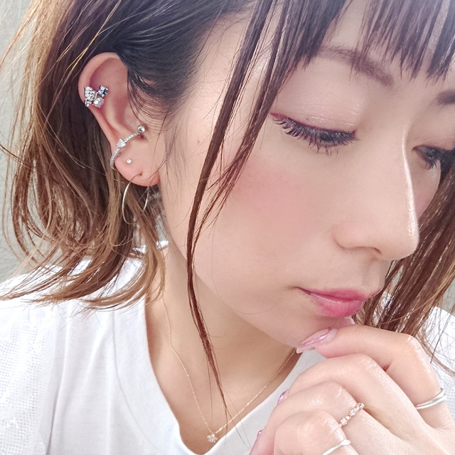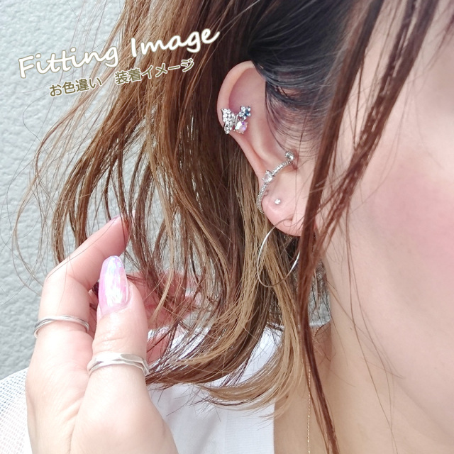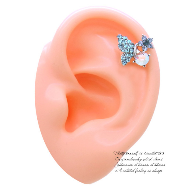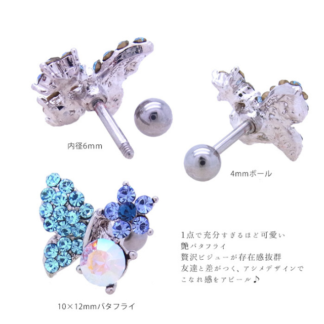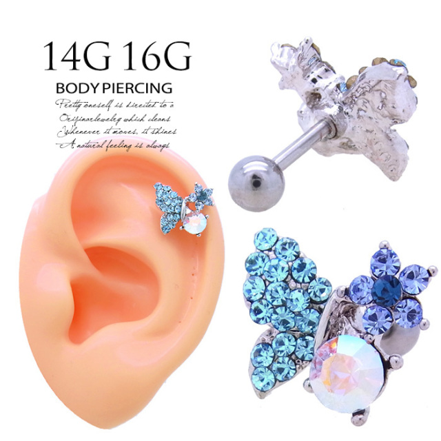 14Gサイズ新登場![14G 16G ]1点で充分すぎるほど可愛い!贅沢ビジュー大きめバタフライ 軟骨ピアス ボディピアス 0930 [シルバー×アクア]tss