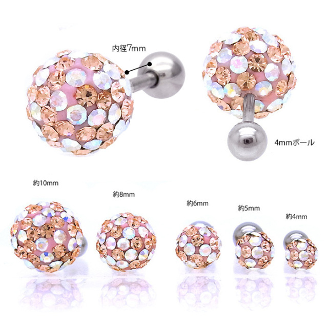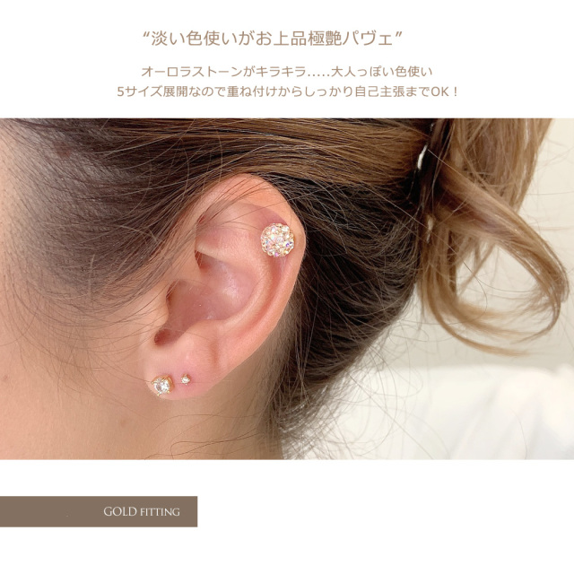 [16G]淡い色使いがお上品極艶パヴェ5サイズ展開軟骨ピアスボディピアス 0938