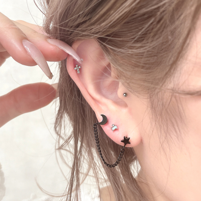 [16G]華奢な存在感♪重ねつけにおススメのサイズ感・ちびちびクロス軟骨ピアスボディピアス 0959