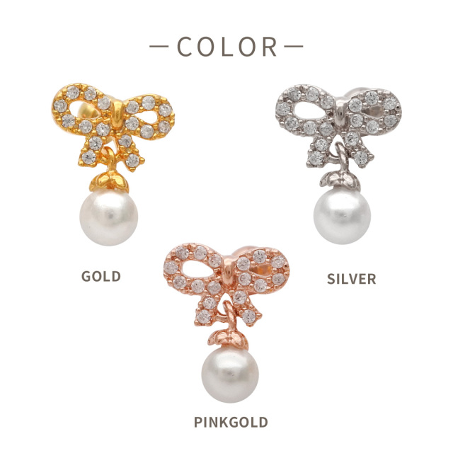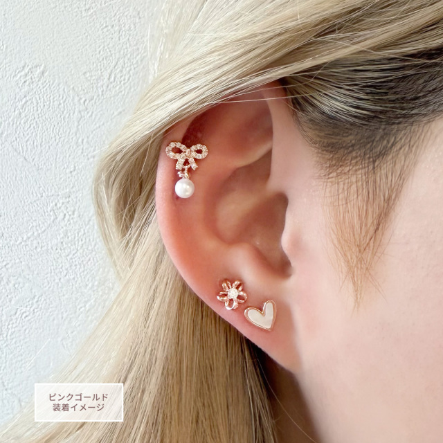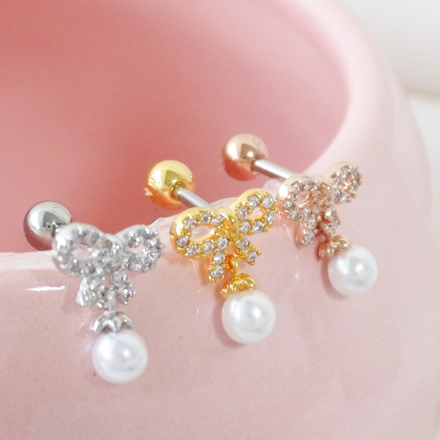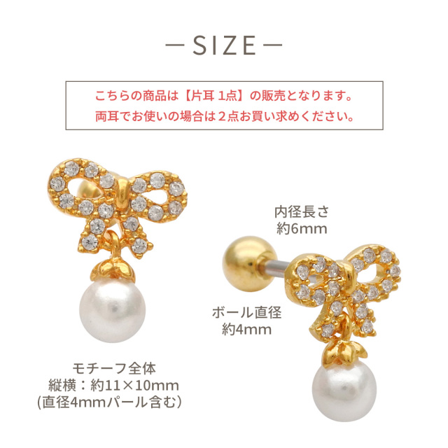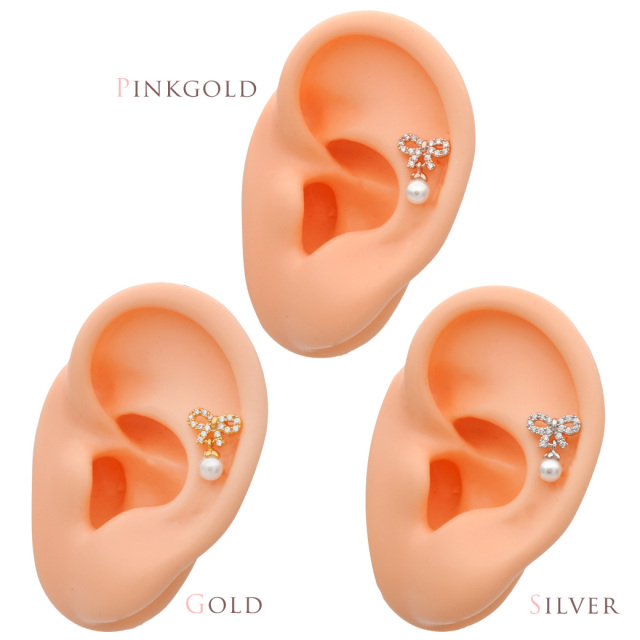 ◇Best12◇ ★今だけ送料無料★【2月再入荷】 [14G 16G ]CZ の輝きとパール の艶が重なる上質なリボン ジュエルストレート 軟骨ピアス ヘリックス ボディピアス 0029