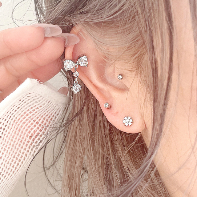 [16G ]並べてつけてもとっても可愛い フラワー ジュエル キュービックジルコニア 軟骨ピアス ヘリックス ボディピアス 0033