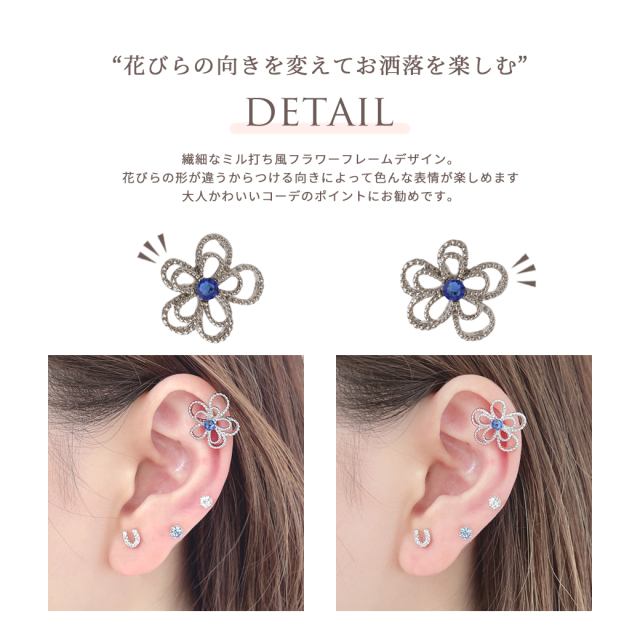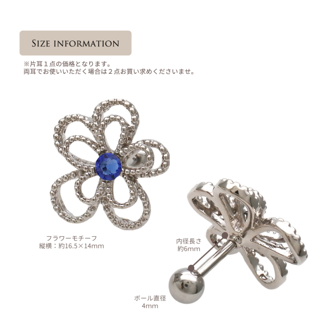 14Gサイズ新登場![14G 16G ]存在感のある大きさが可愛い繊細なミル打ち風フラワー デザイン 軟骨ピアス ヘリックス ボディピアス 0037
