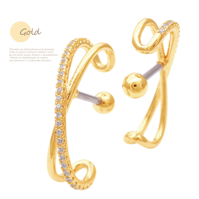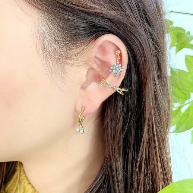 【3月再入荷】[16G]繊細に輝いて大人かわいい♪キュービックジルコニア イヤーカフピアス ストレート 軟骨ピアス ヘリックス ボディピアス 0056