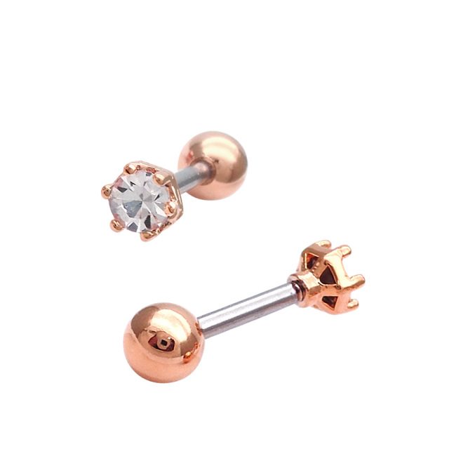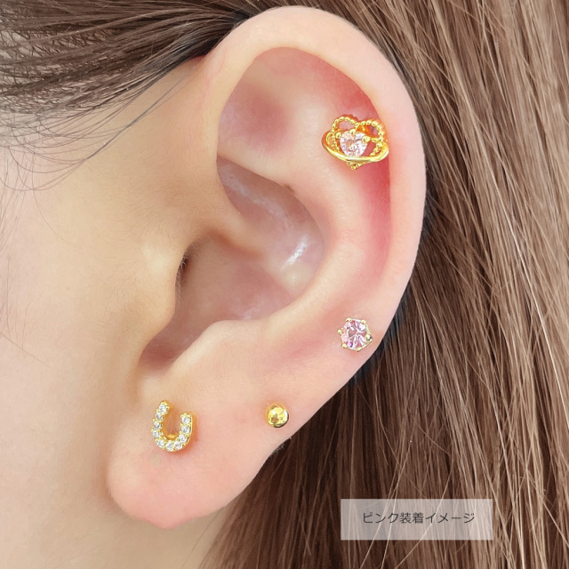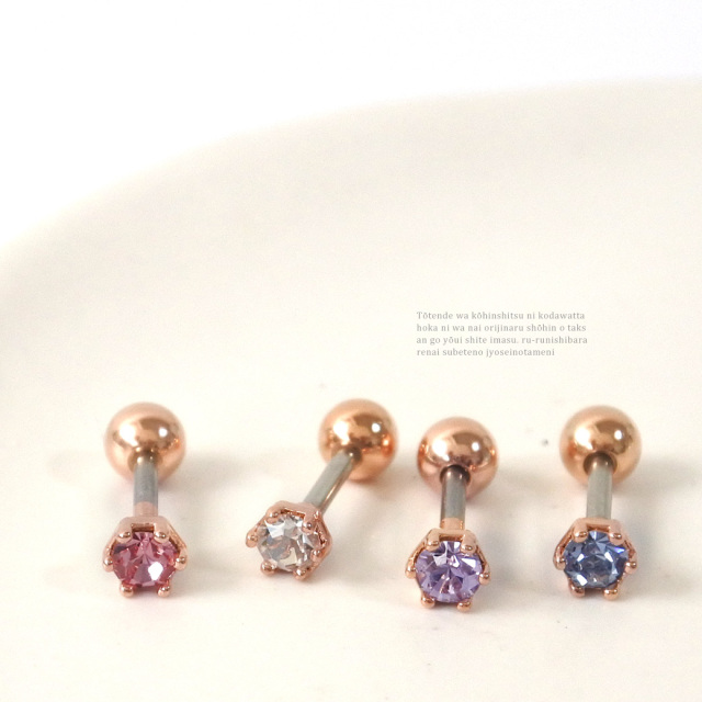 [14G 16G ]キレイ色♪カラフルストーン 高級感のある6本爪デザイン ストレート 軟骨ピアス ヘリックス ボディピアス [ピンクゴールド] 0073