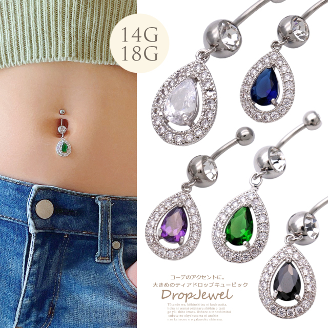 ★スペシャル★プライス★[14G18G]パッと目を引く存在感♪華やかティアドロップ 雫 モチーフ しずく型 耳たぶへそピアスボディピアス 0089