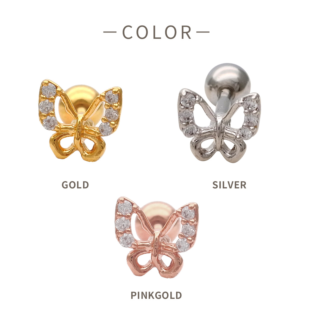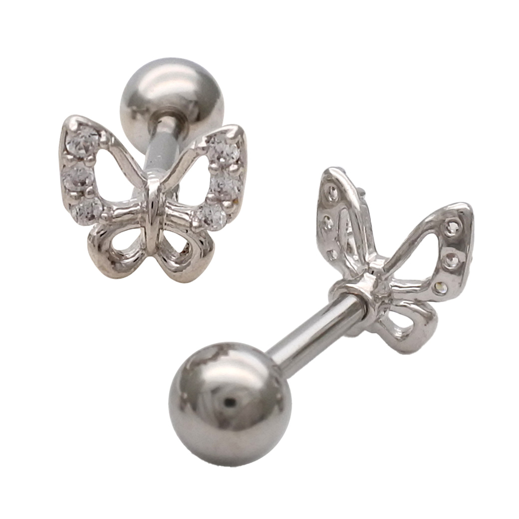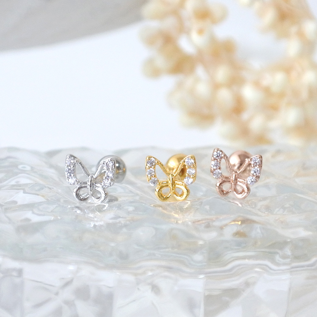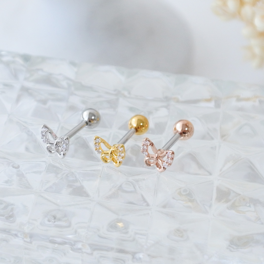 [14G 16G ]縁取りCZが上品に輝くバタフライ デザイン ストレート 軟骨ピアス ヘリックス ボディピアス 0125