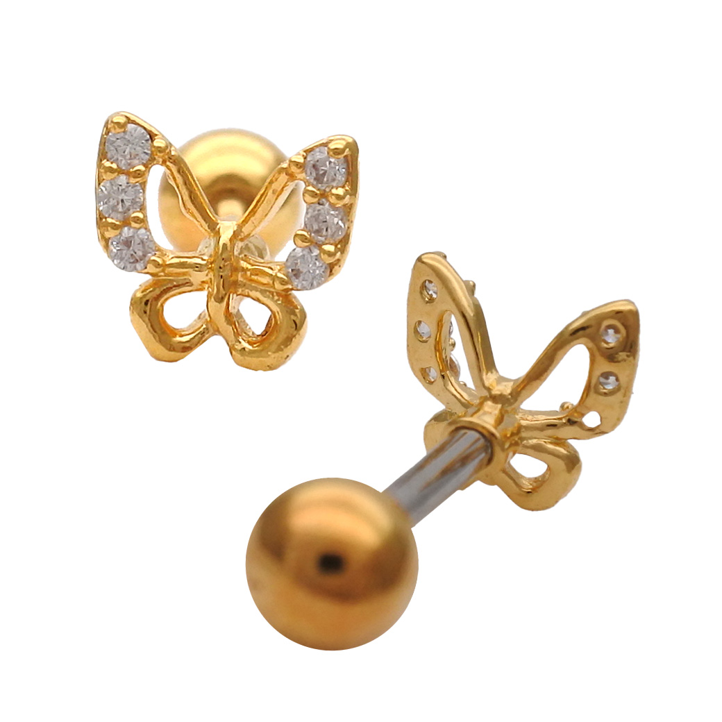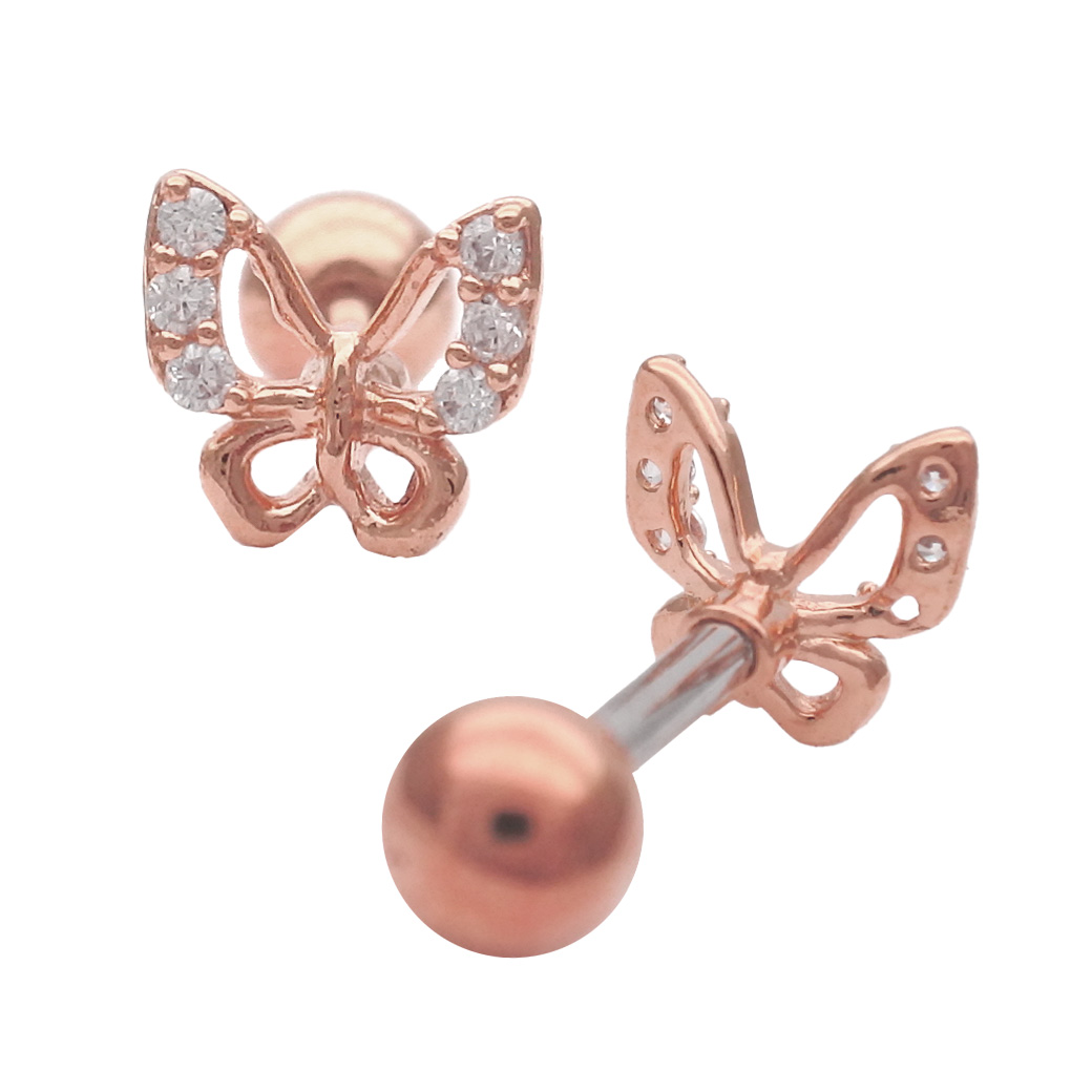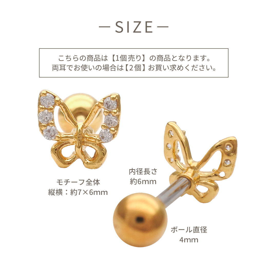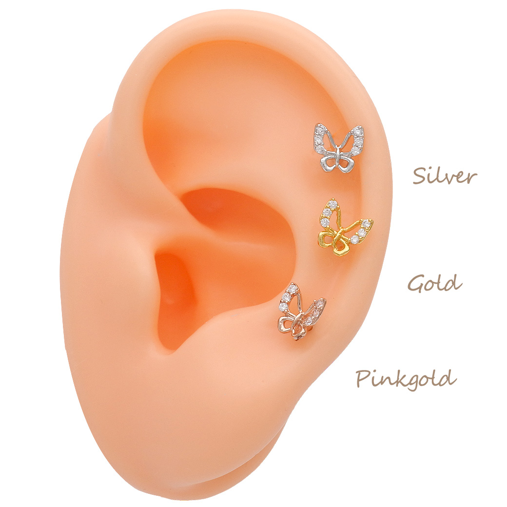 [14G 16G ]縁取りCZが上品に輝くバタフライ デザイン ストレート 軟骨ピアス ヘリックス ボディピアス 0125