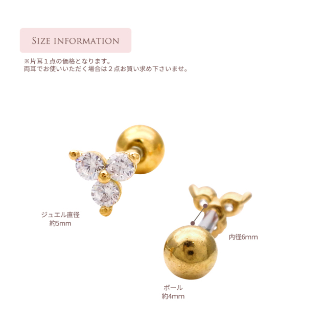 [16G ]合わせやすい上品なサイズ感が可愛い。3粒キュービックジルコニア軟骨ピアス ヘリックス ボディピアス 0143