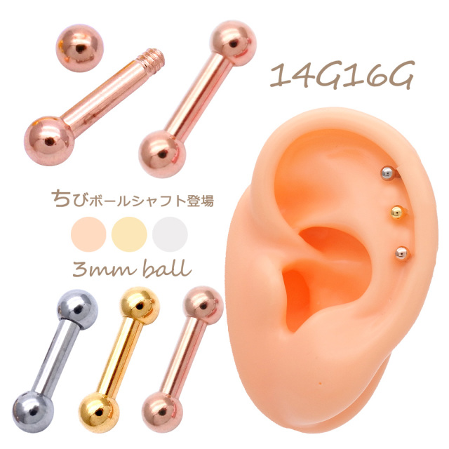 [16G 14G ]デイリー使いに、こんなの欲しかった!定番ちびちびシャフト シンプル 軟骨ピアスボディピアス [3mmボール]0147