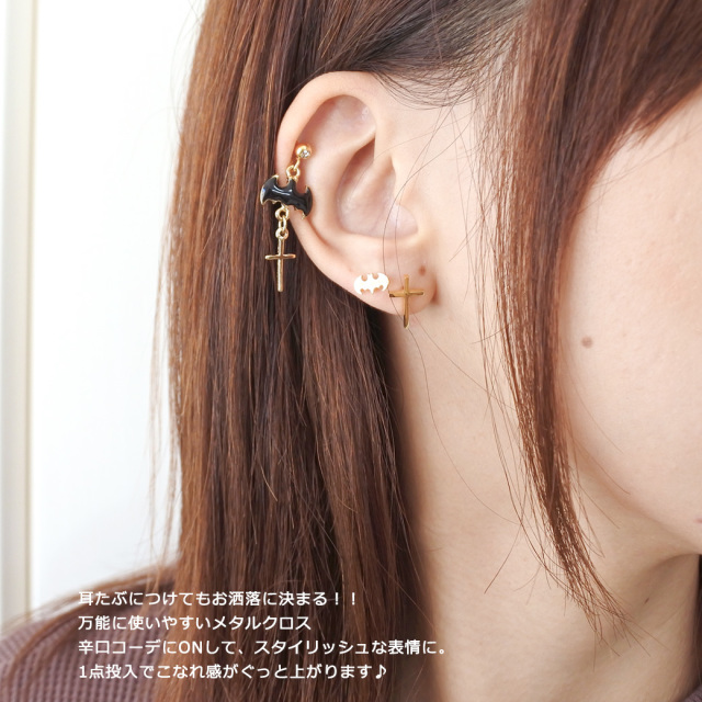 [16G]辛口 コーデ にON。万能に使いやすいメタルクロス 軟骨ピアス ヘリックス ボディピアス 0164