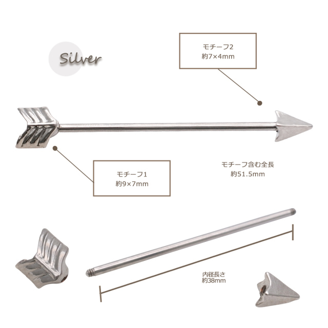 [14G 16G ]2つのピアスホールを1つのピアスで繋げる インダストリアル ピアス 矢 ロングバーベル 軟骨ピアス ヘリックス ボディピアス 0187 SS