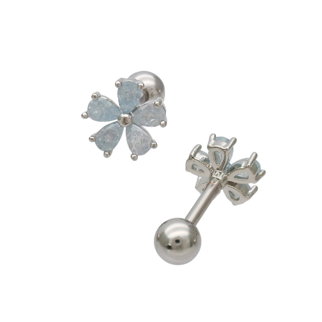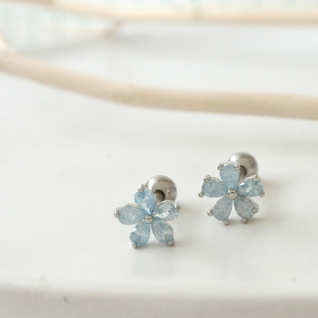[16G ]透明感のあるアクアキュービックが繊細に輝く。フラワー flower ストレート 軟骨ピアス ヘリックス ボディピアス 0211