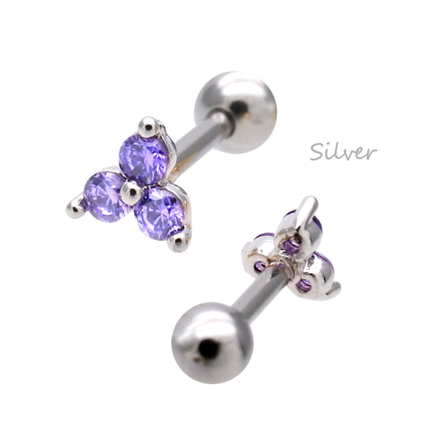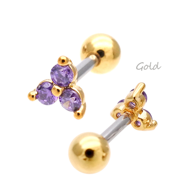 [16G ]大人かわいい綺麗色パープル。3粒キュービックジルコニア軟骨ピアス ヘリックス ボディピアス 0229