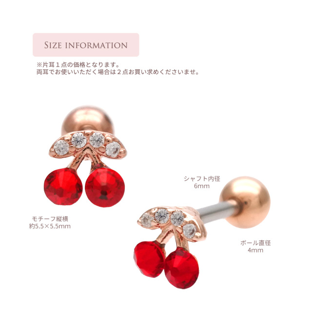 [16G]CZがキラキラ ちびちび サイズのさくらんぼ コーディネートに愛嬌をプラス♪Cherry ストレート 軟骨ピアス ヘリックス ボディピアス 0242