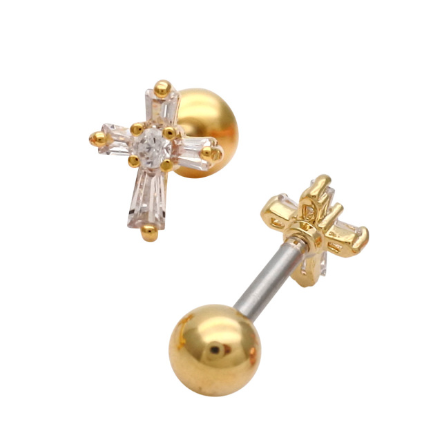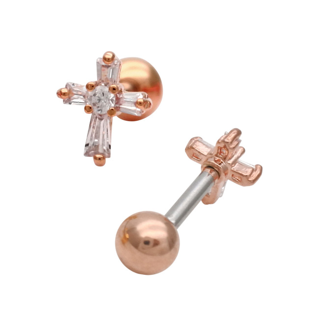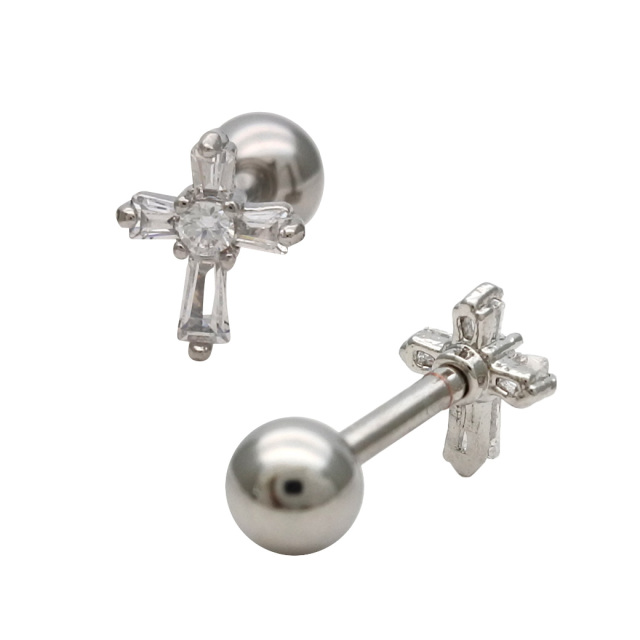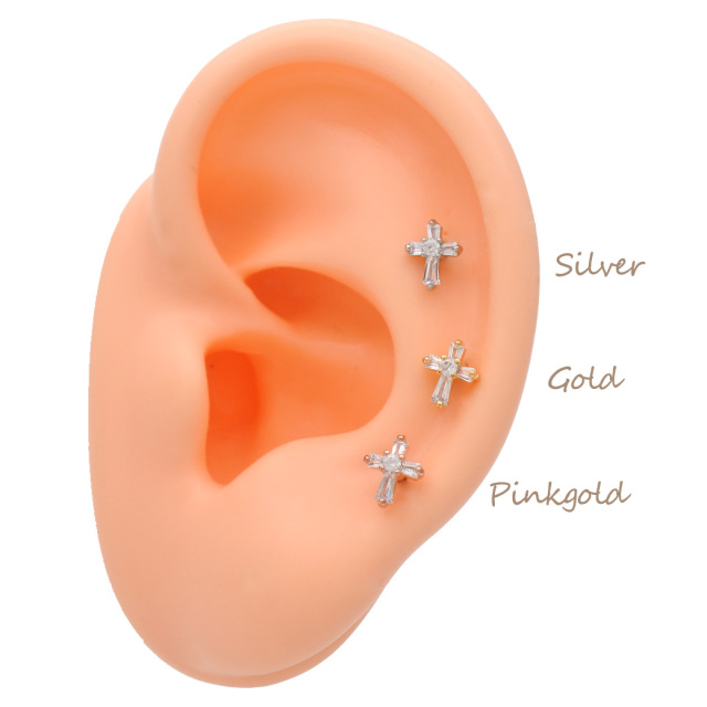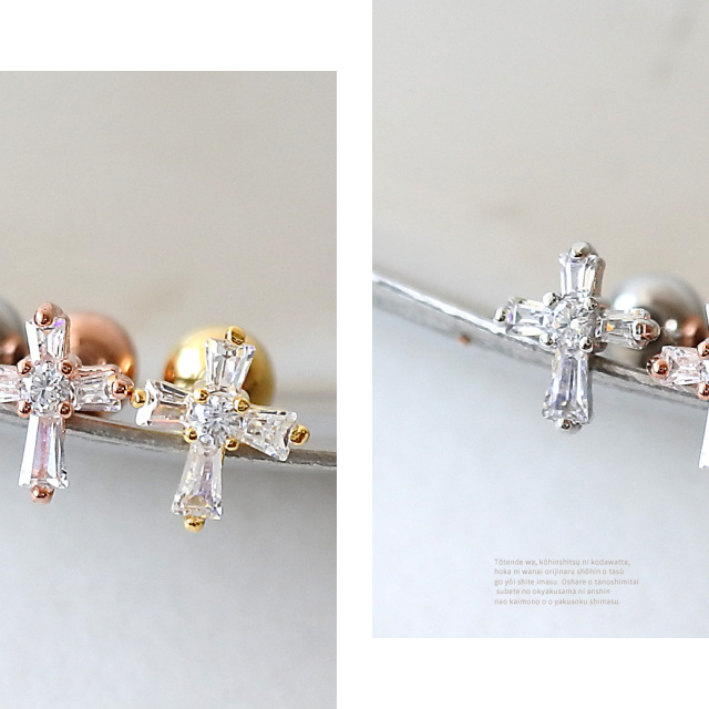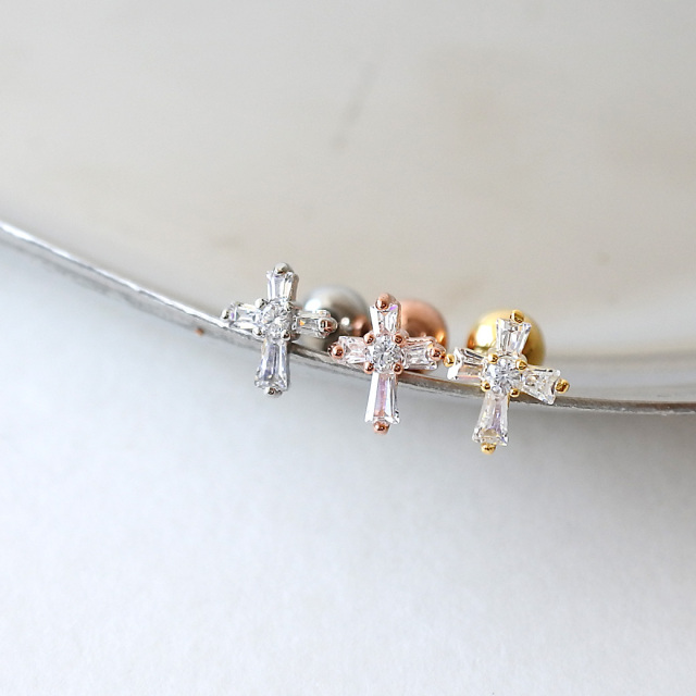 [14G 16G ]並べて着けても、とっても可愛い♪ちび CZ クロス ストレート 軟骨ピアス ヘリックス ボディピアス 0247