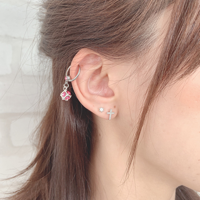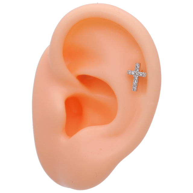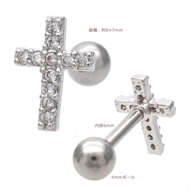 14Gサイズ新登場![14G 16G ]一点使いでも、重ね付でもコーデの幅が広がる。華奢クロス キュービックジルコニア 軟骨ピアス ヘリックス ボディピアス0255
