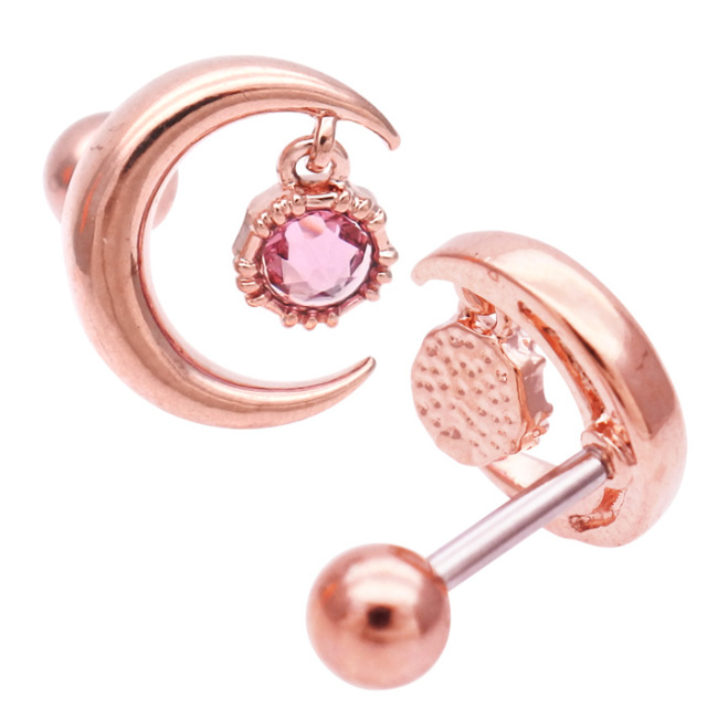 14Gサイズ新登場![14G 16G]ピンクゴールドが女の子らしい ぷっくりしたMOONモチーフ 月 軟骨ピアス ヘリックス ボディピアス 0299
