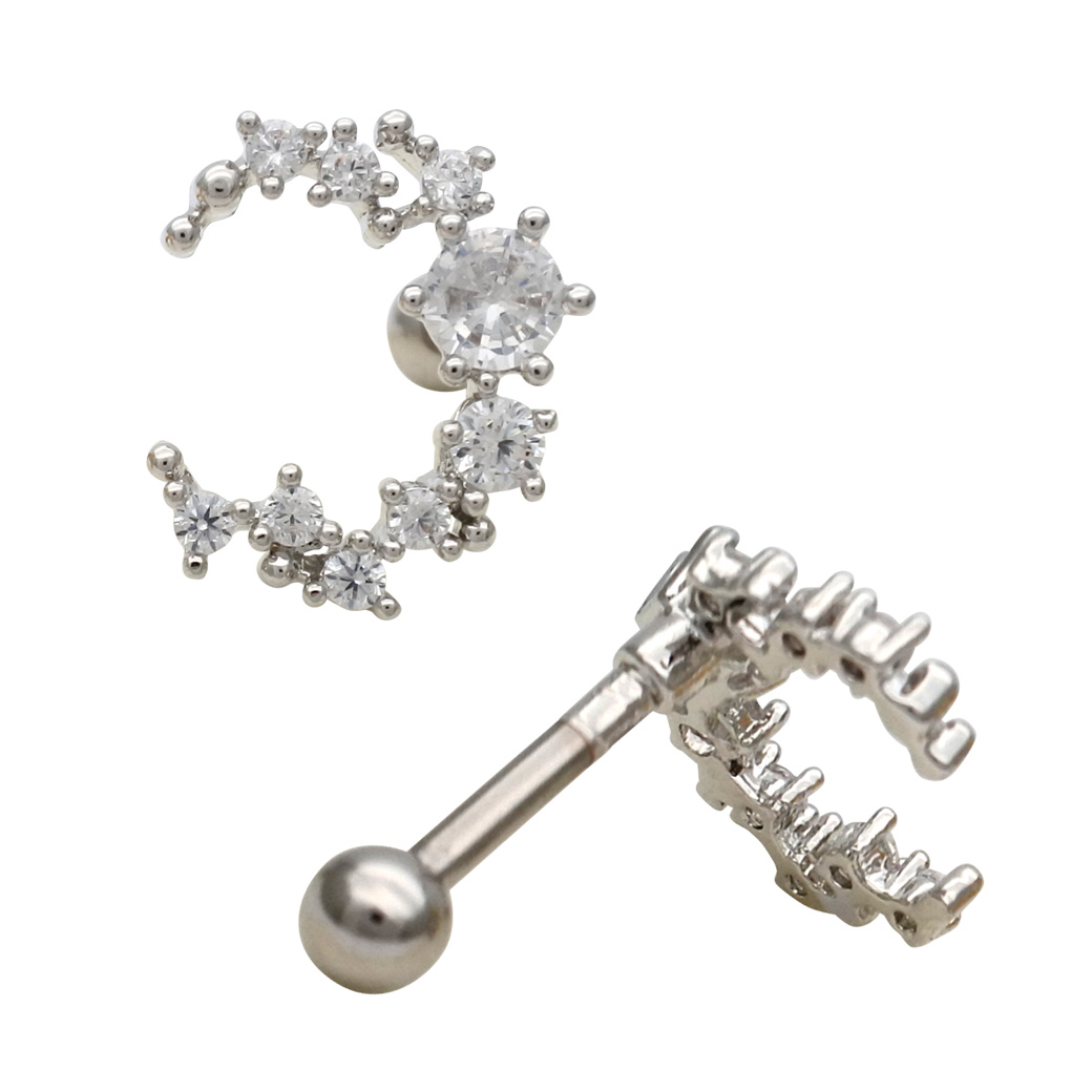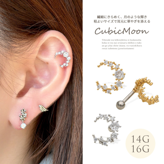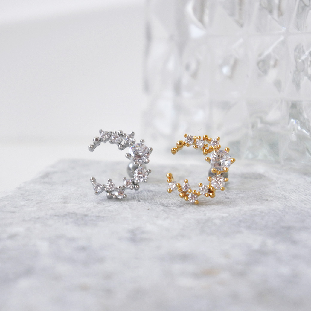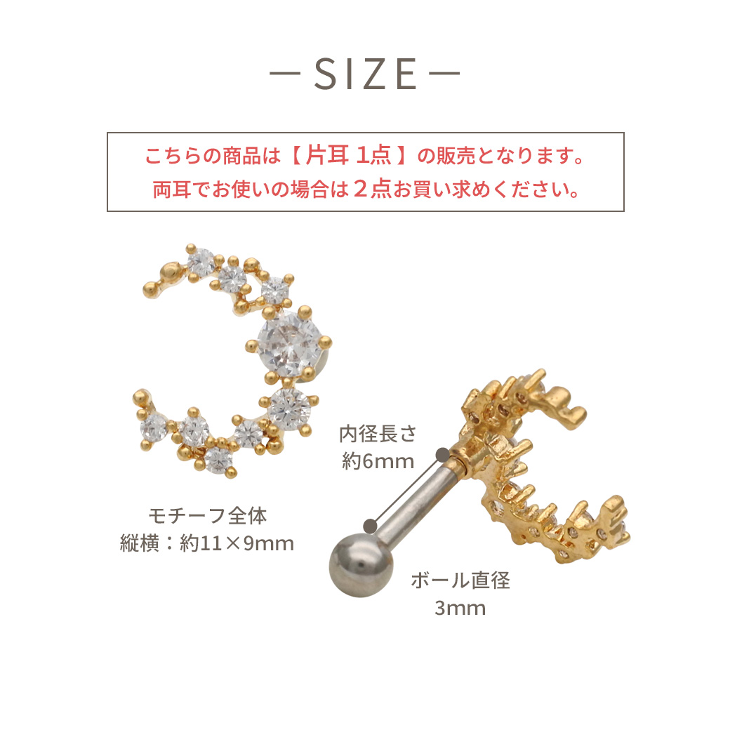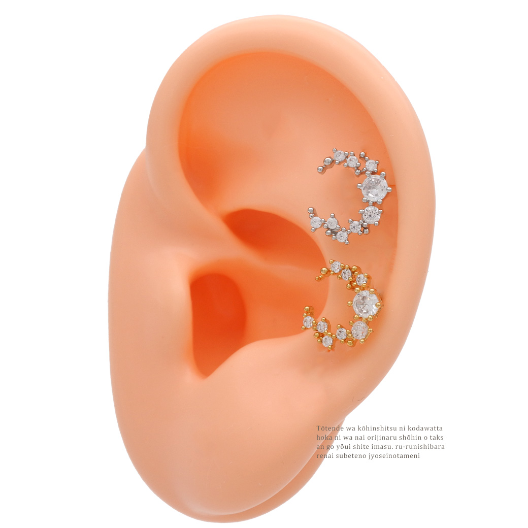 【4月新作】[14G 16G ]繊細にきらめく、月 のような輝き程よいサイズで耳に華やぎを添えるストレート 軟骨ピアス ヘリックス ボディピアス 0360