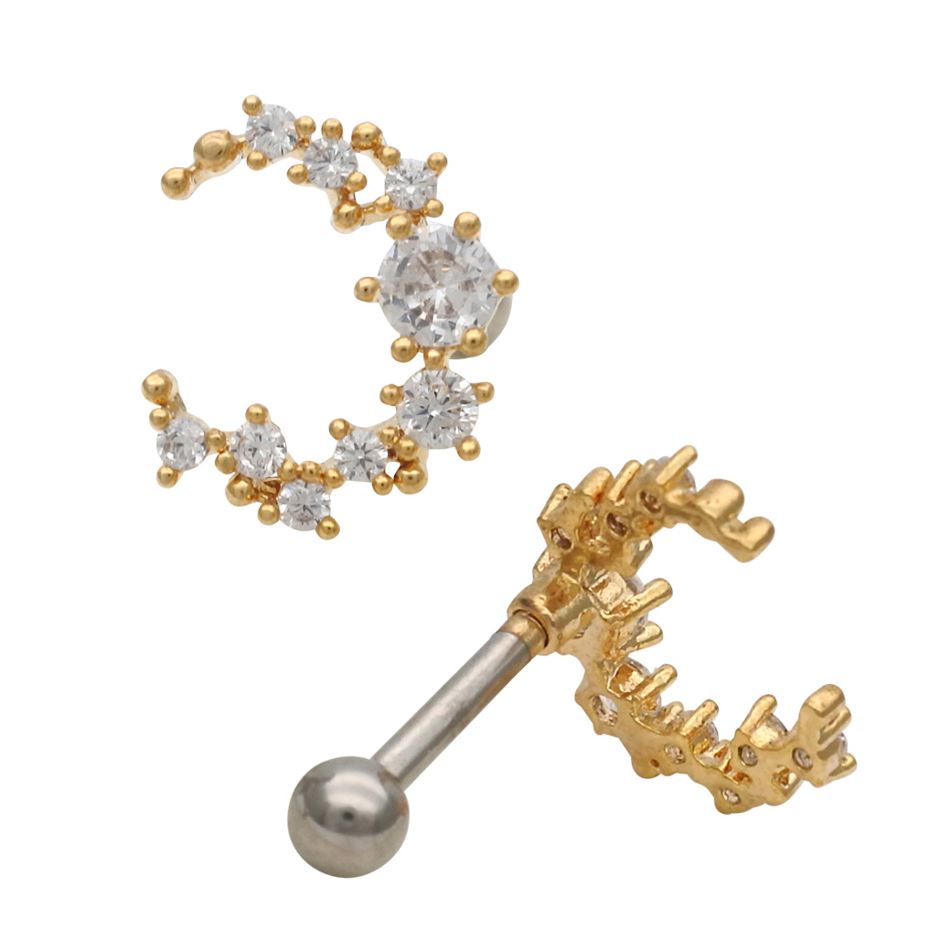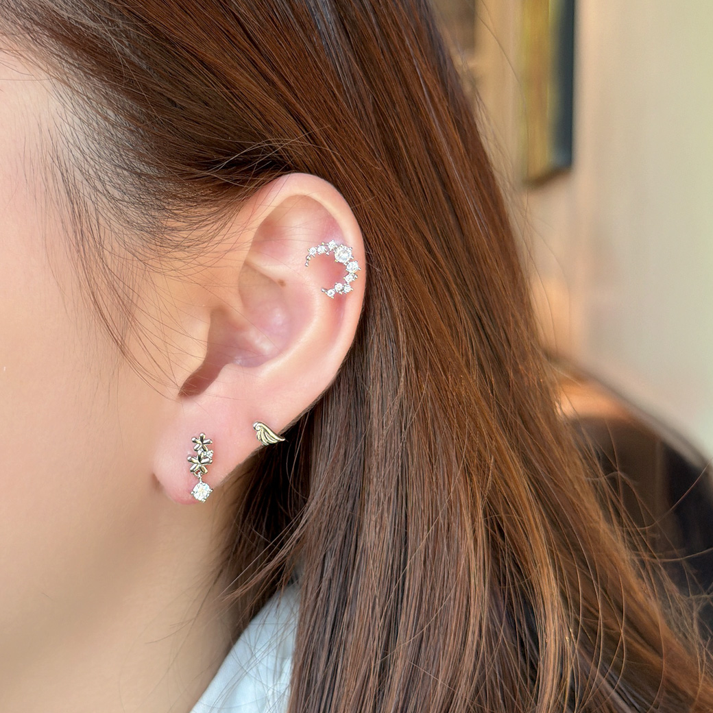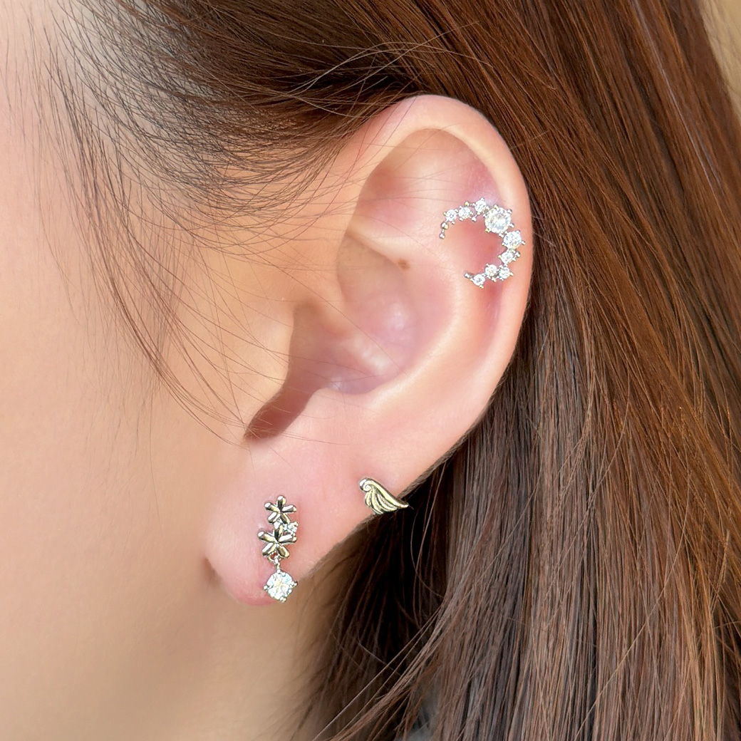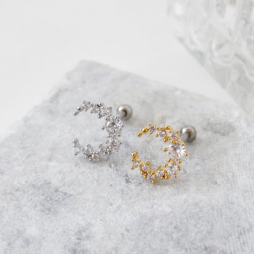 【4月新作】[14G 16G ]繊細にきらめく、月 のような輝き程よいサイズで耳に華やぎを添えるストレート 軟骨ピアス ヘリックス ボディピアス 0360