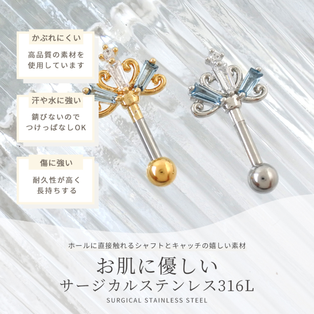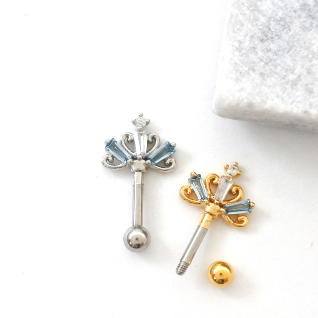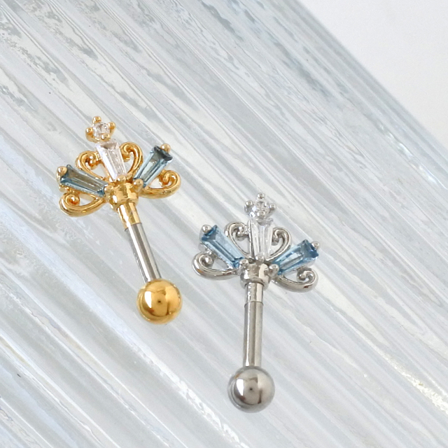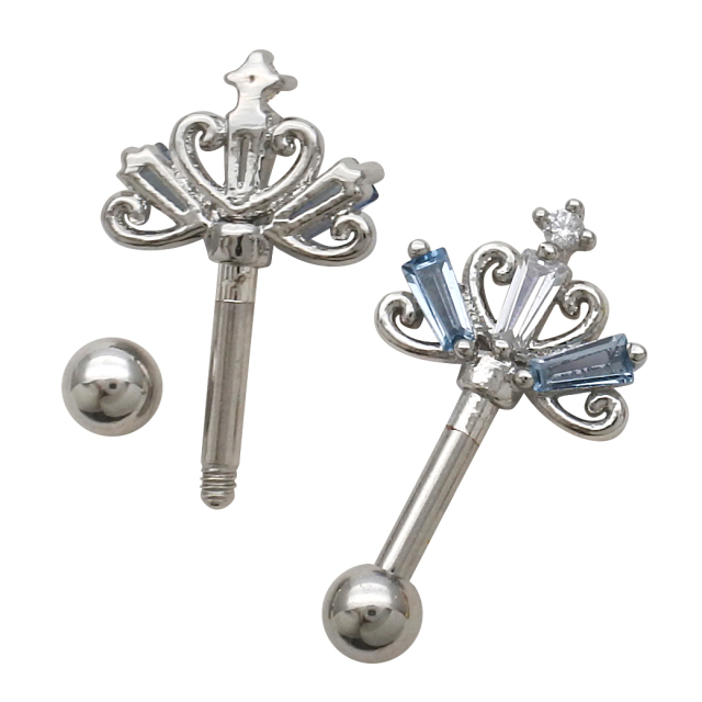 [14G 16G ]大人かわいい遊び心♪ 王冠 クラウン モチーフ アンテナヘリックス ストレート 軟骨ピアス ヘリックス ボディピアス 0369