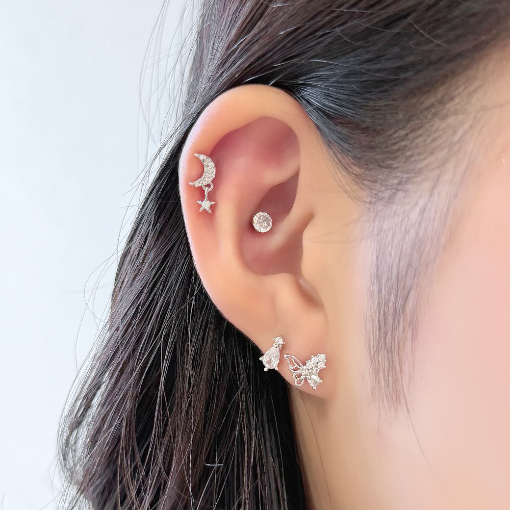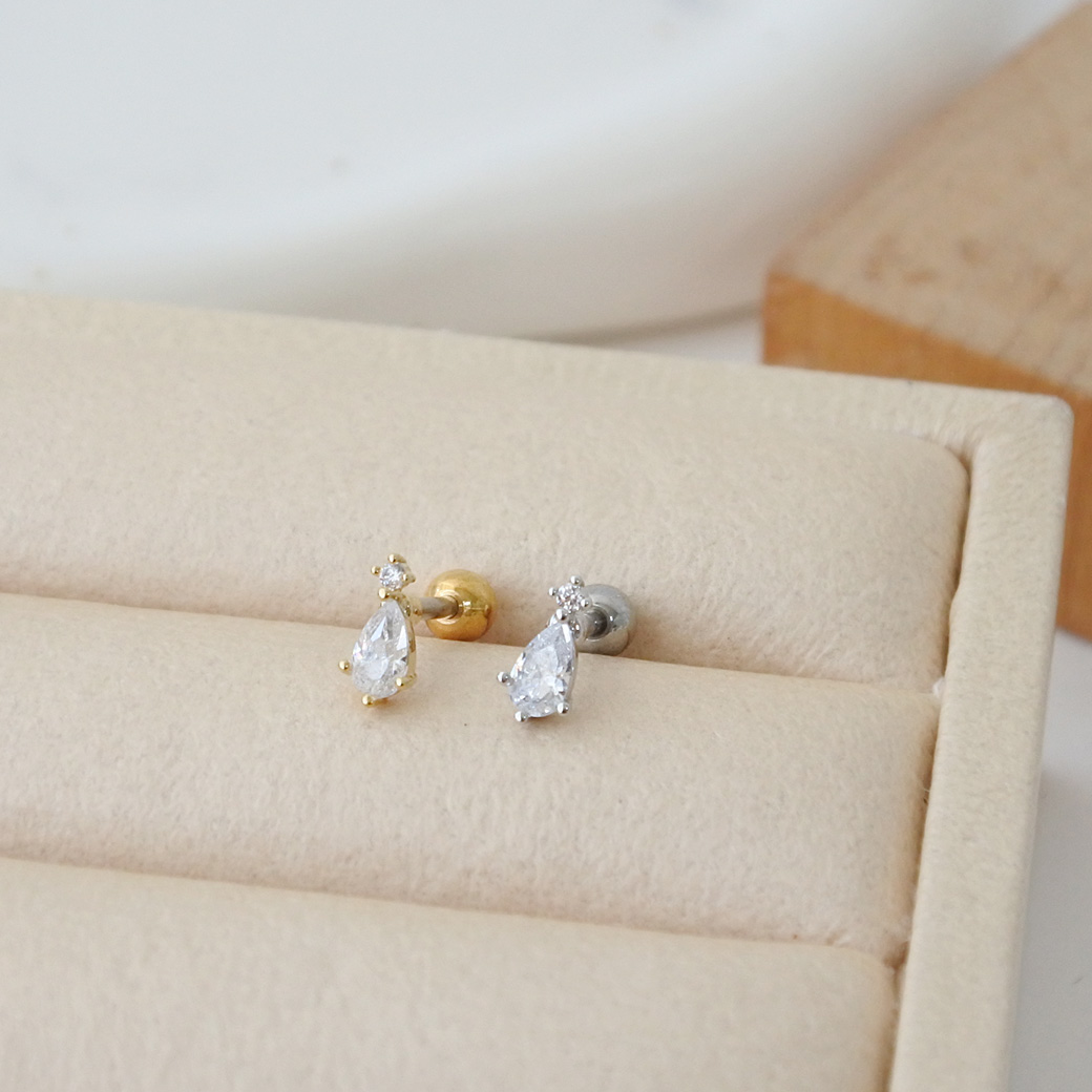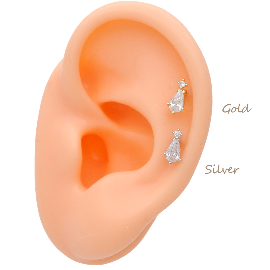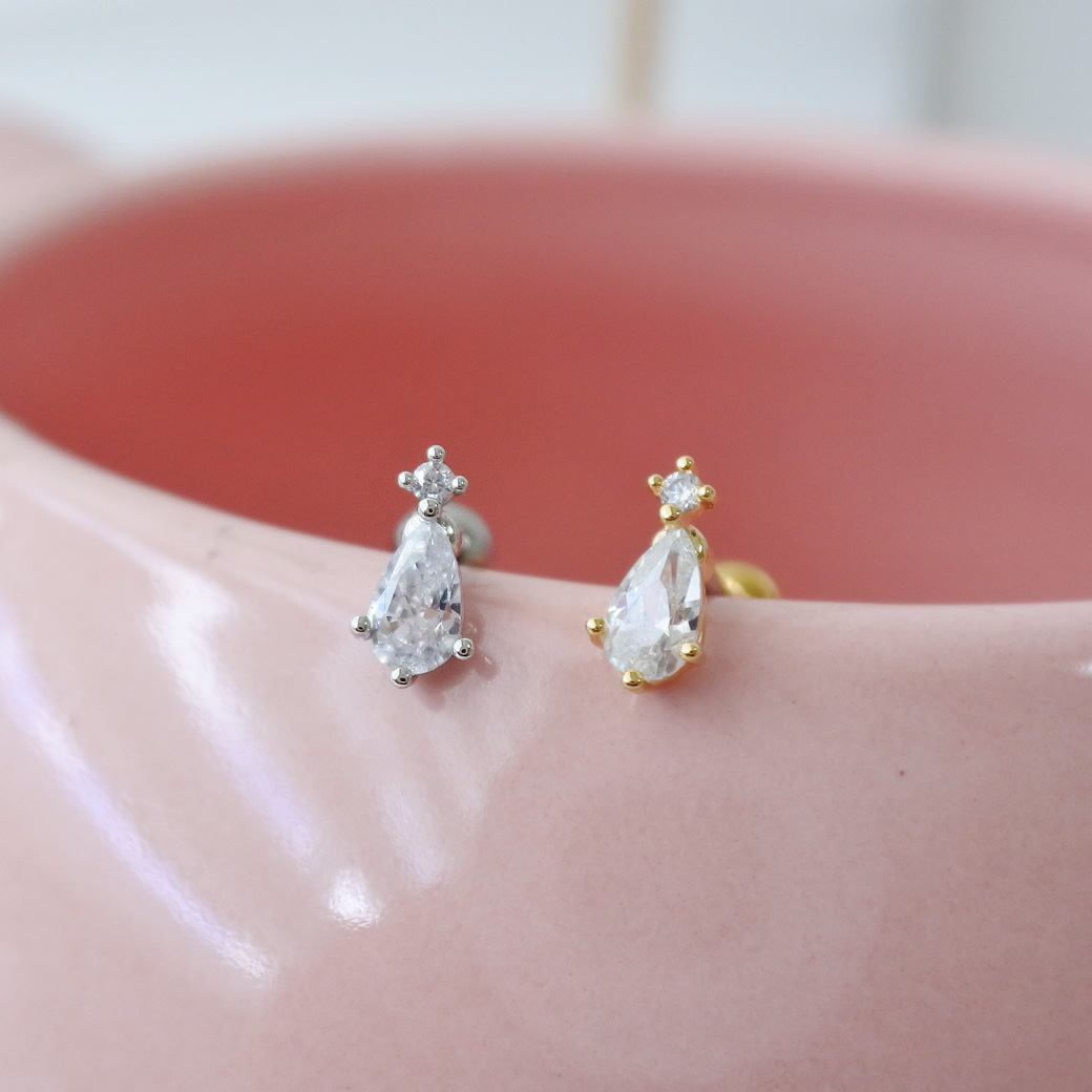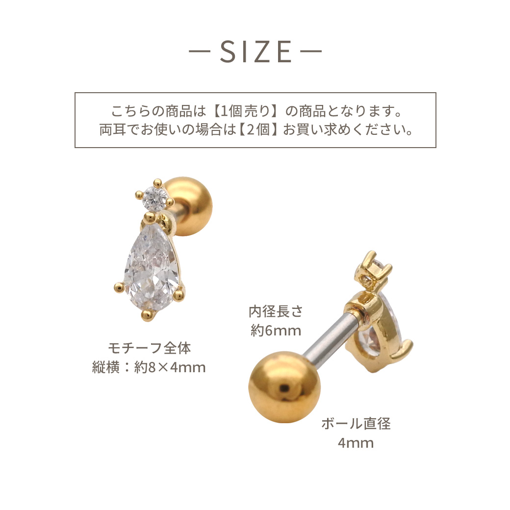 [14G 16G ]いつものコーデにプラスワン上品に輝くちびドロップCZ デザイン ストレート 軟骨ピアス ヘリックス ボディピアス 0433
