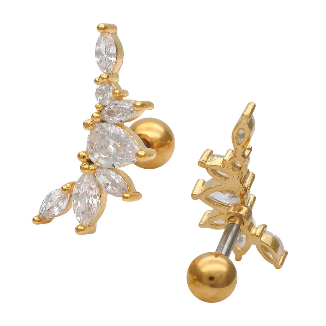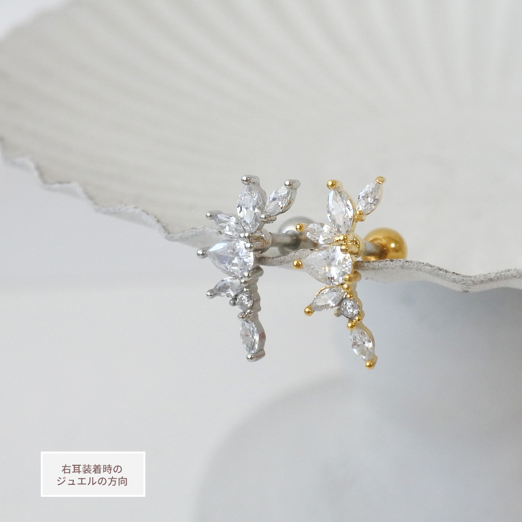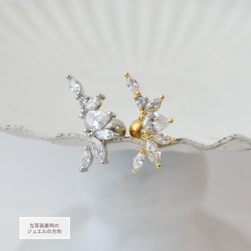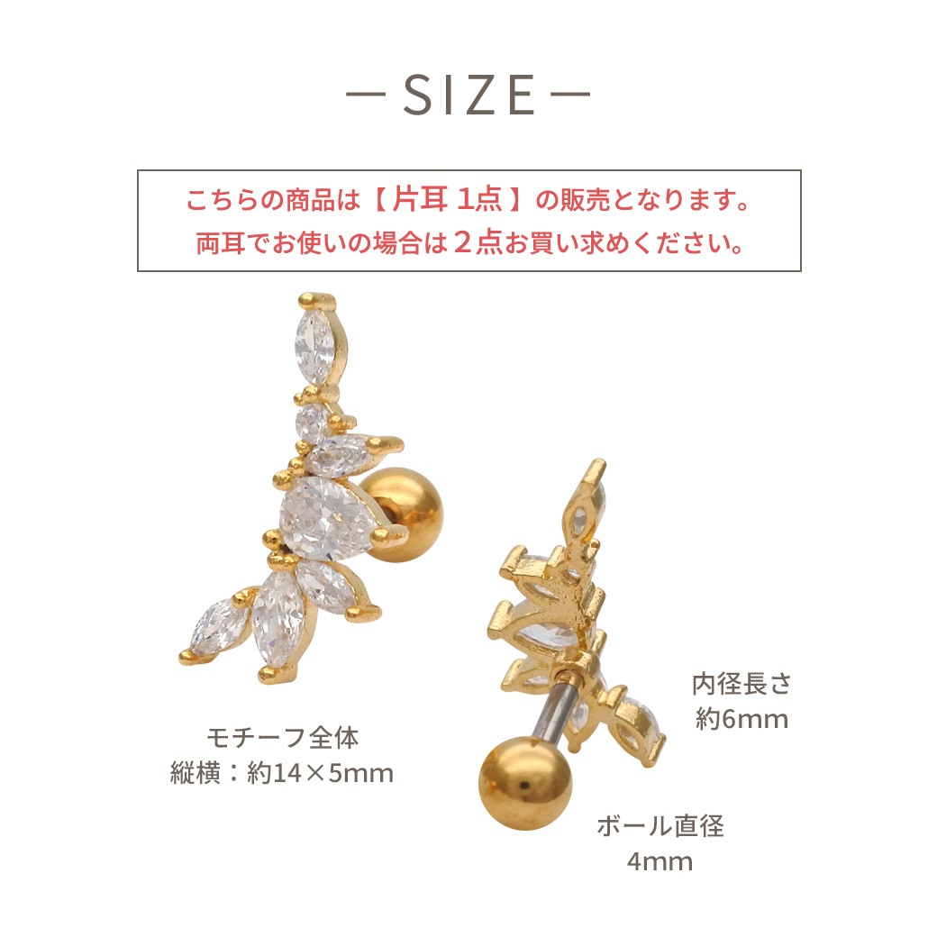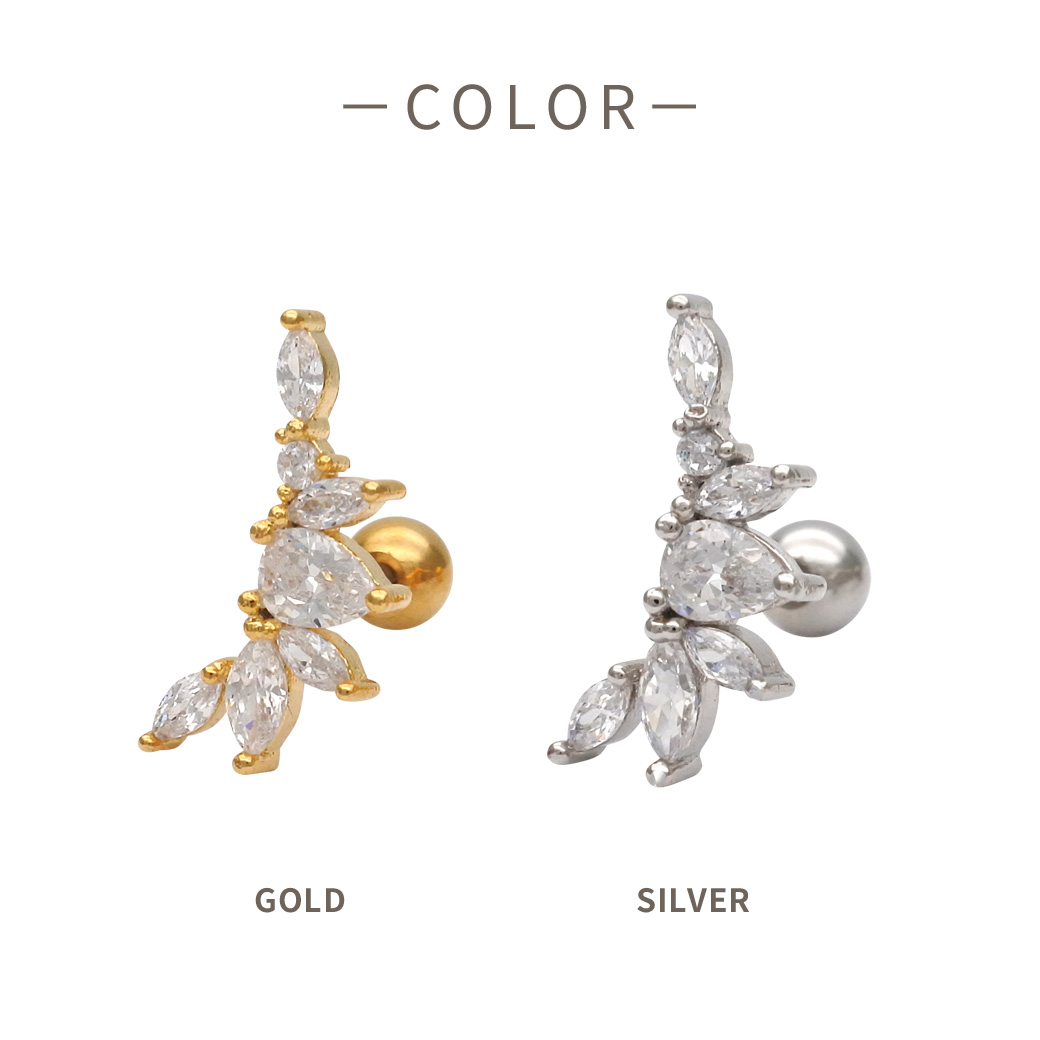 【4月新作】[14G 16G ]甘さを抑えて大人リーフ デザイン耳元に上品な華やかさをプラスストレート 軟骨ピアス ヘリックス ボディピアス 0499