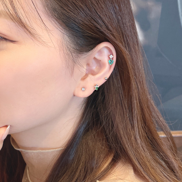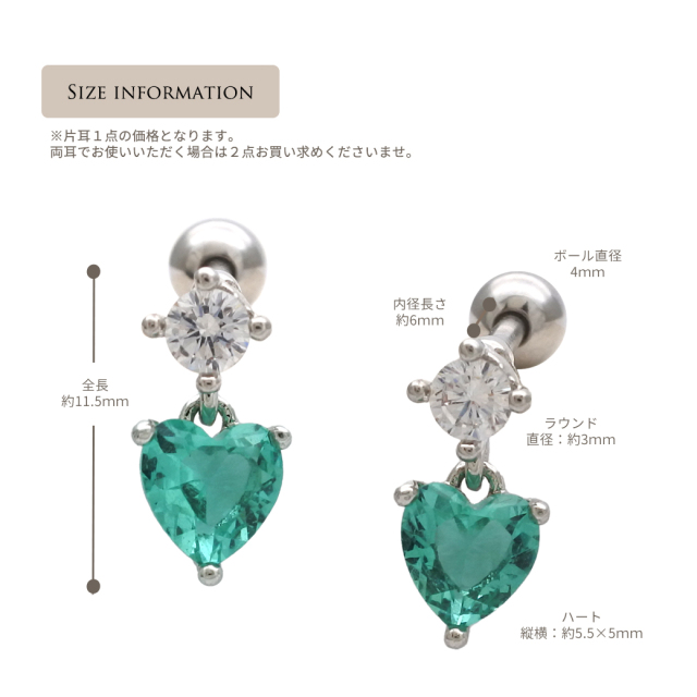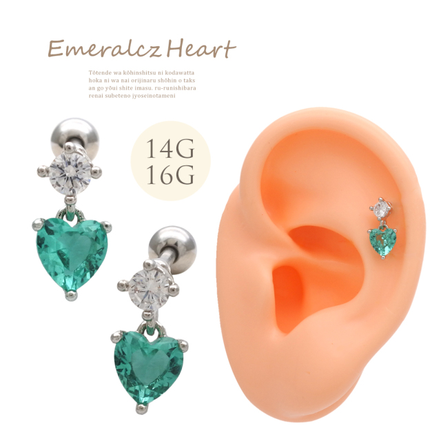 [14G 16G ]透明感のあるキレイ色ハートが揺れる♪キュービックジルコニア チャーム 軟骨ピアス ヘリックス ボディピアス 0518