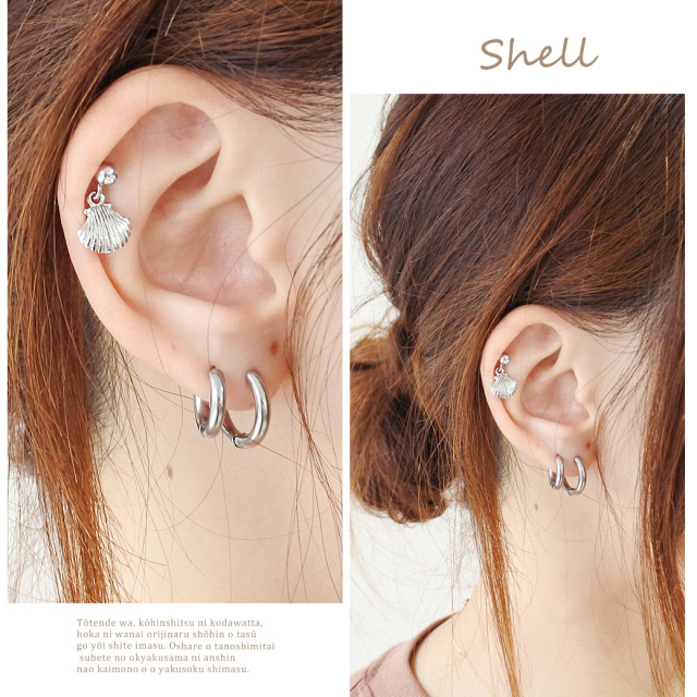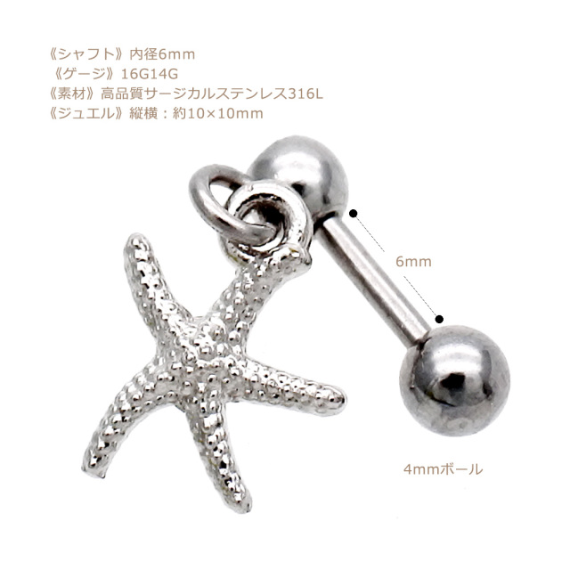 [16G14G]シルバーNew!夏のおしゃれに!大人可愛い【シェル】&【スターフィッシュ】 ヒトデ 貝殻 軟骨ピアス ボディピアス 0519 夏アイテム