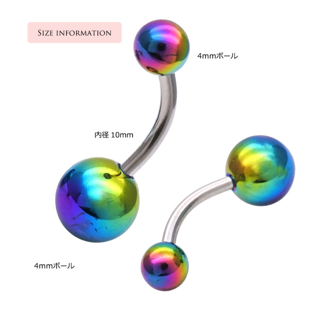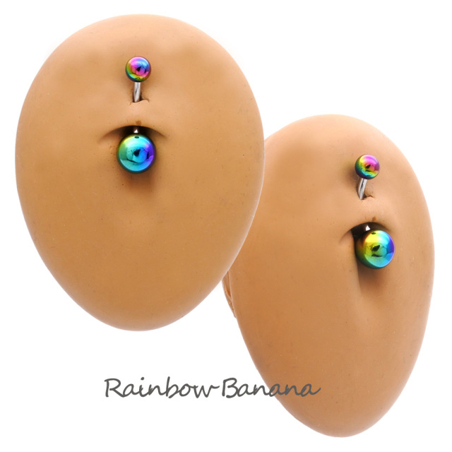 [14G]お洒落レインボーカラー!コーティング無しでお肌にも優しい♪シンプル バナナへそピアスボディピアス 0531