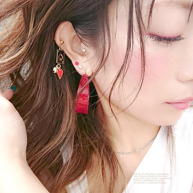[16G 14G ]赤を効かせる遊びごころ♪クローバー ×ハート Clubs heart トランプ 軟骨ピアス ヘリックス ボディピアス 0532