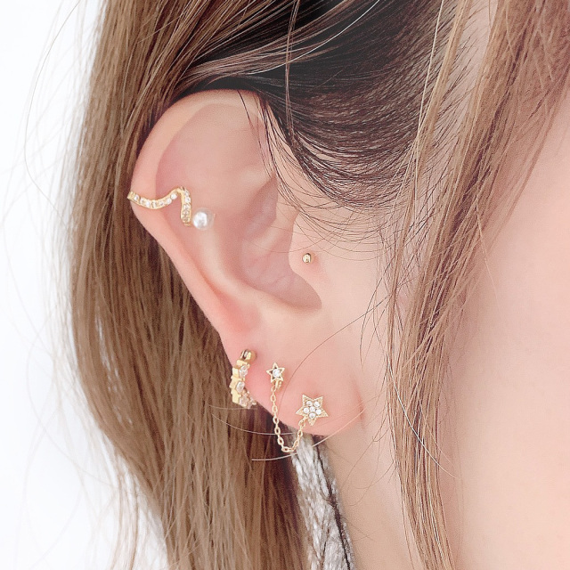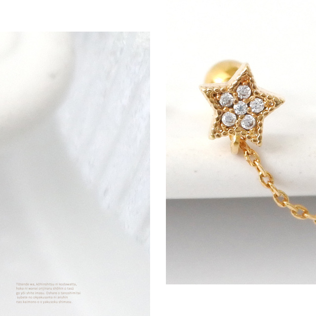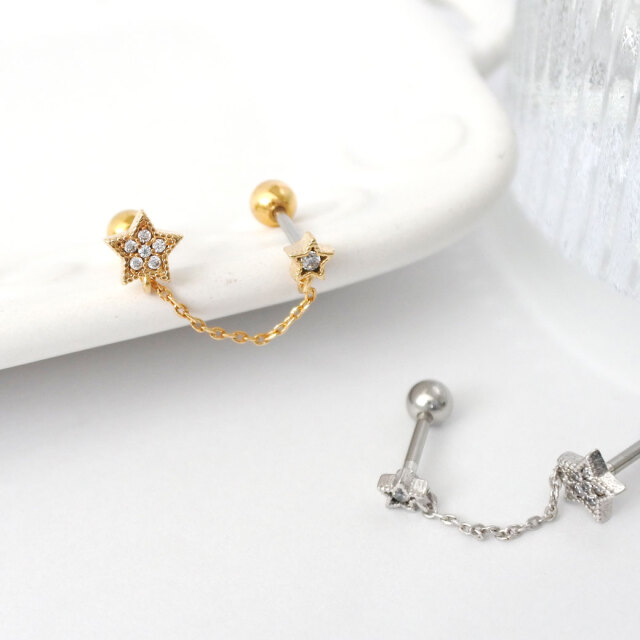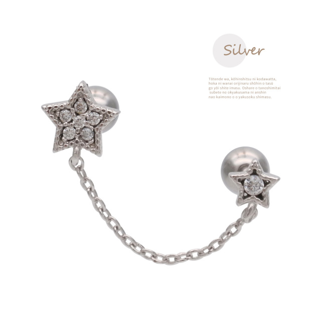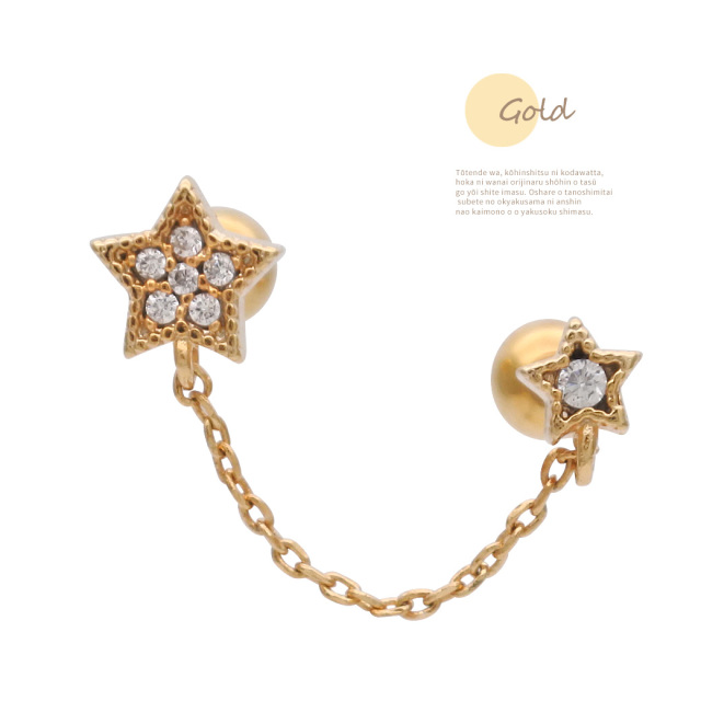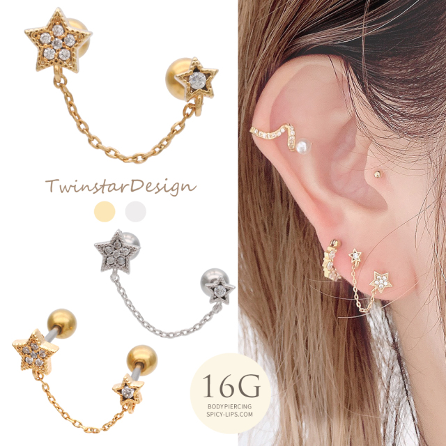 【3月再入荷】[16G ]遊び心ある可愛さ☆2ホール ちび スター ダブル ジュエル 星 starキュービックジルコニア チェーン ストレート軟骨ピアス ヘリックス ボディピアス 0573