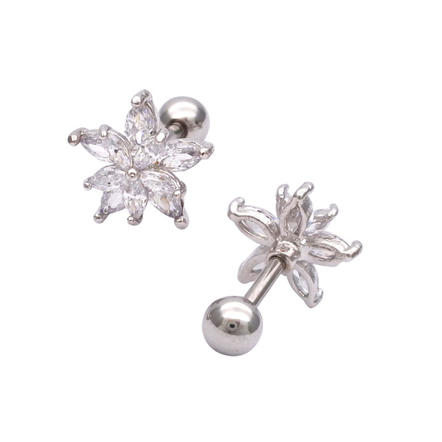 [16G]重なった花びらが可愛い♪爽やかシルバー フラワー キュービックジルコニア 花 flower ストレートバーベル 軟骨ピアス ヘリックス ボディピアス 0580