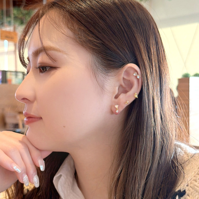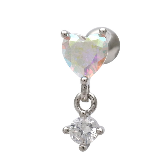 【5月新作】[14G 16G ]ときめきを詰め込んだ、きらめくオーロラ ハート デザインストレート 軟骨ピアス ヘリックス ボディピアス 0582