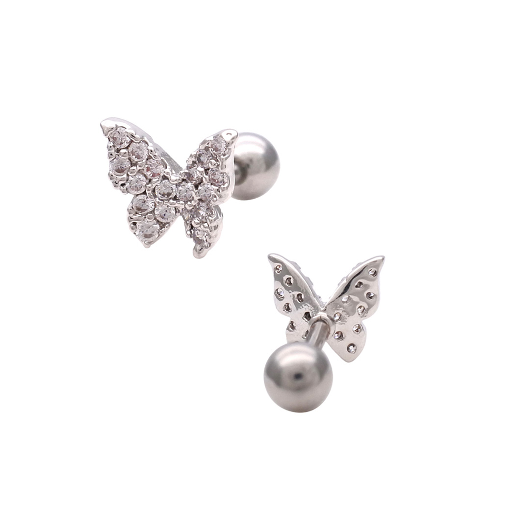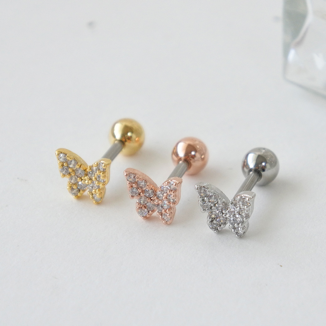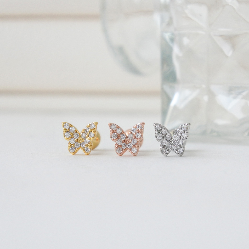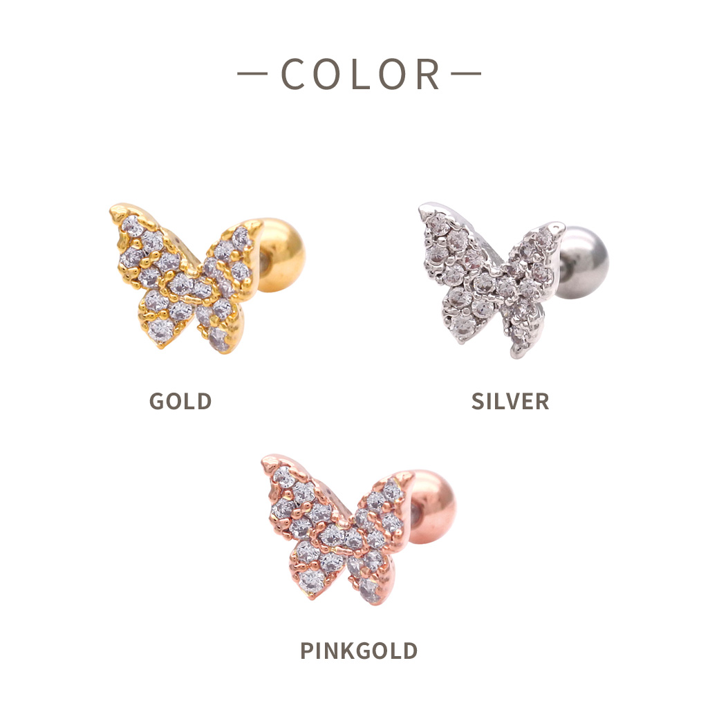 【4月新作】[14G 16G ]敷き詰められたCZ が光を受けて美しくきらめくバタフライ デザインストレート 軟骨ピアス ヘリックス ボディピアス 0649
