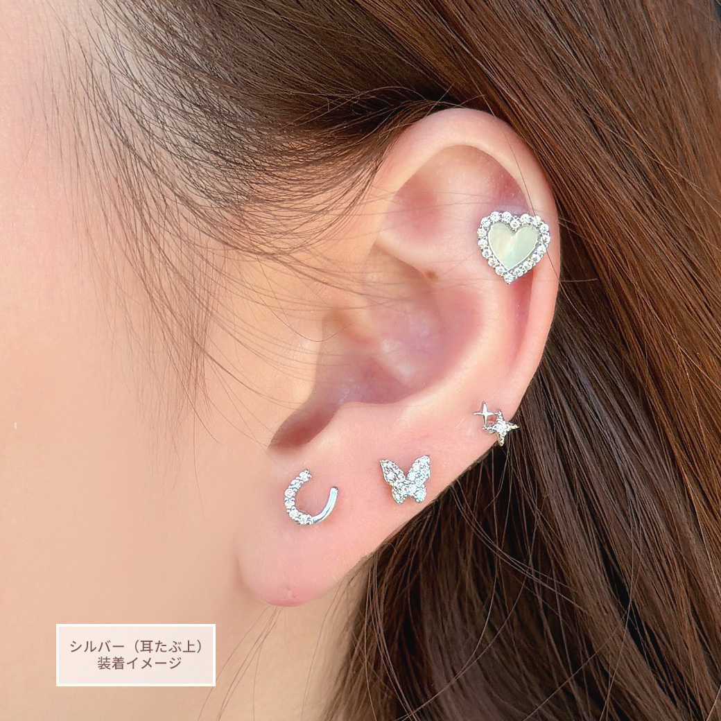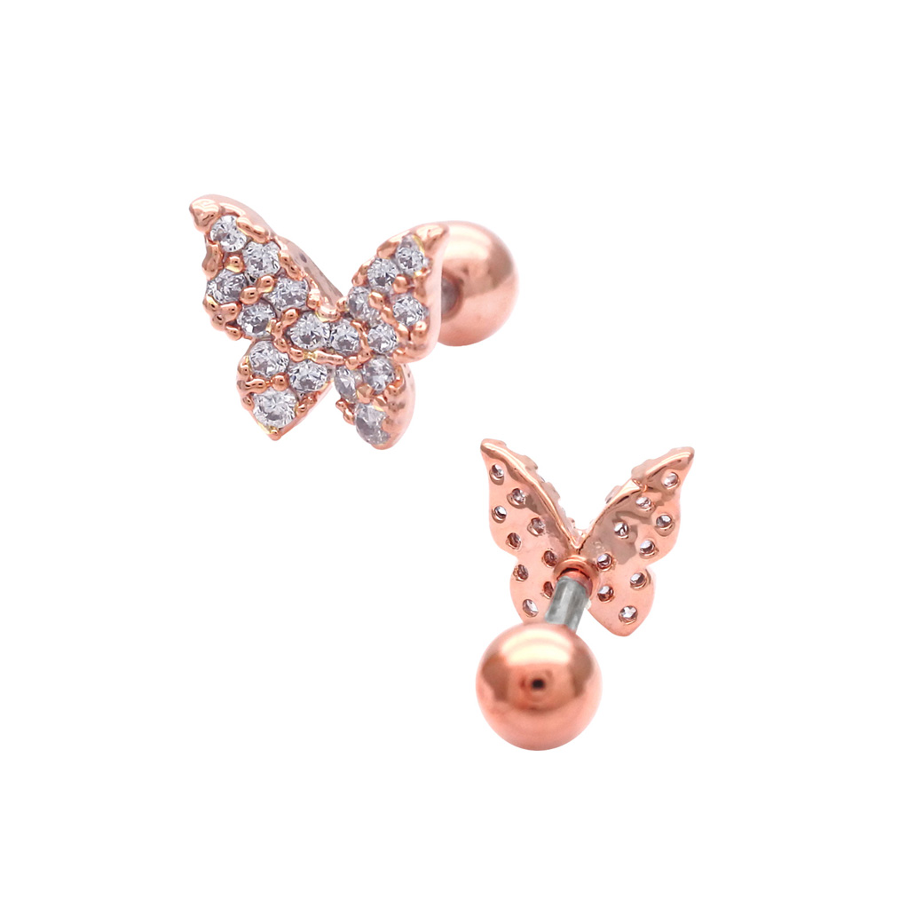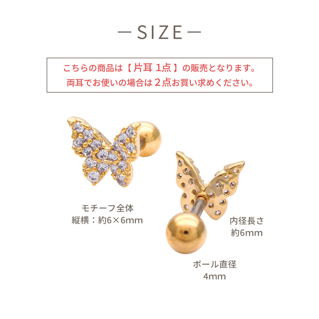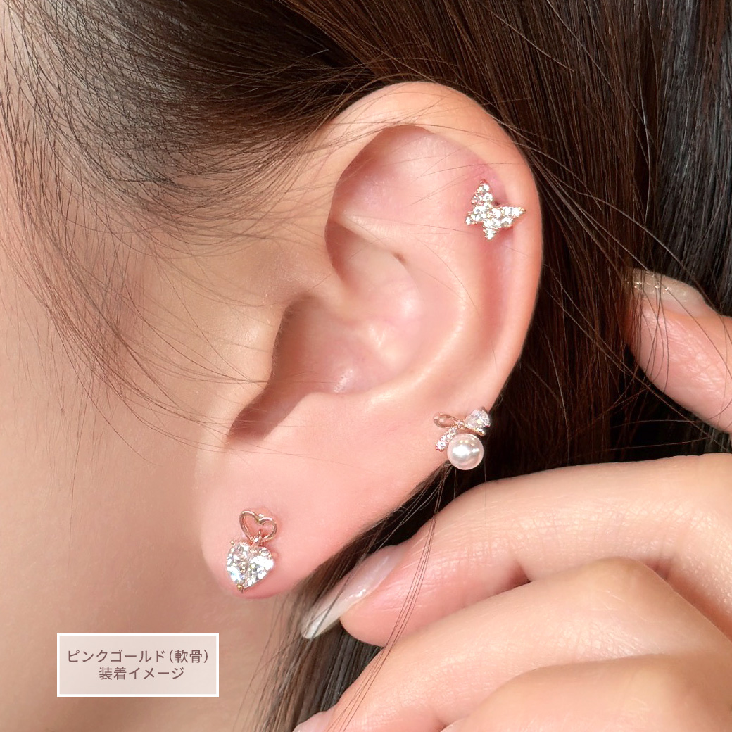 【4月新作】[14G 16G ]敷き詰められたCZ が光を受けて美しくきらめくバタフライ デザインストレート 軟骨ピアス ヘリックス ボディピアス 0649