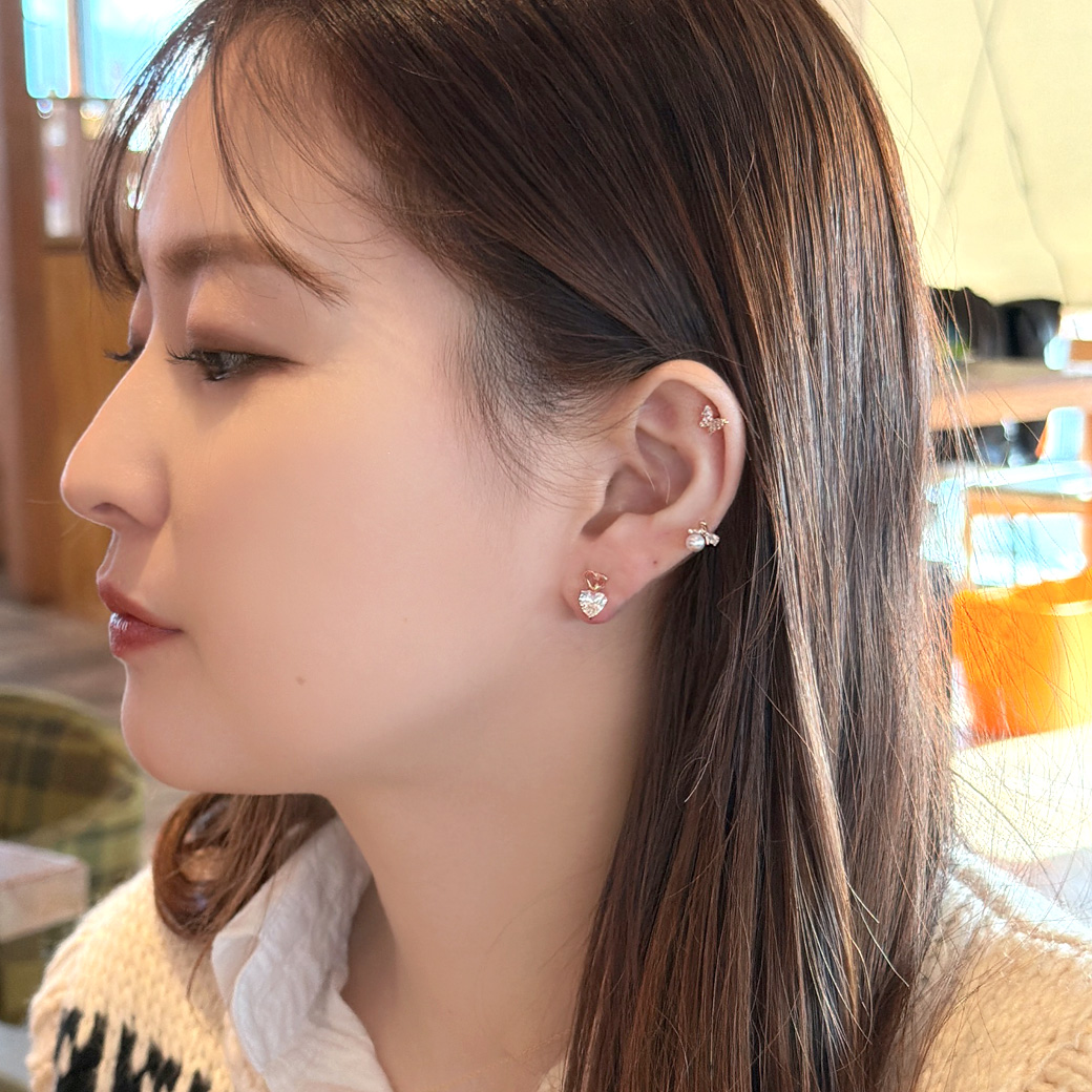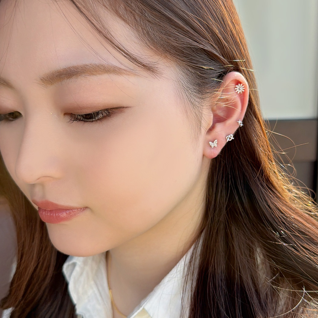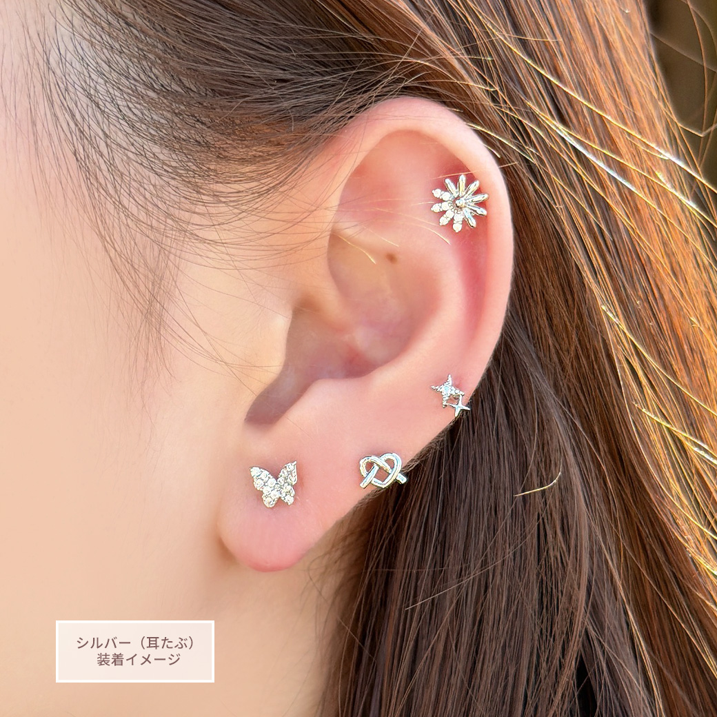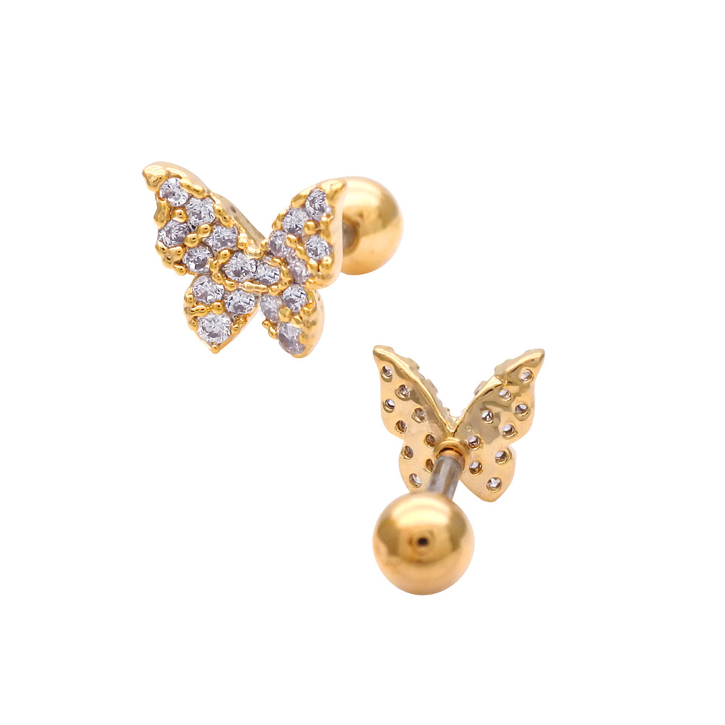 【4月新作】[14G 16G ]敷き詰められたCZ が光を受けて美しくきらめくバタフライ デザインストレート 軟骨ピアス ヘリックス ボディピアス 0649