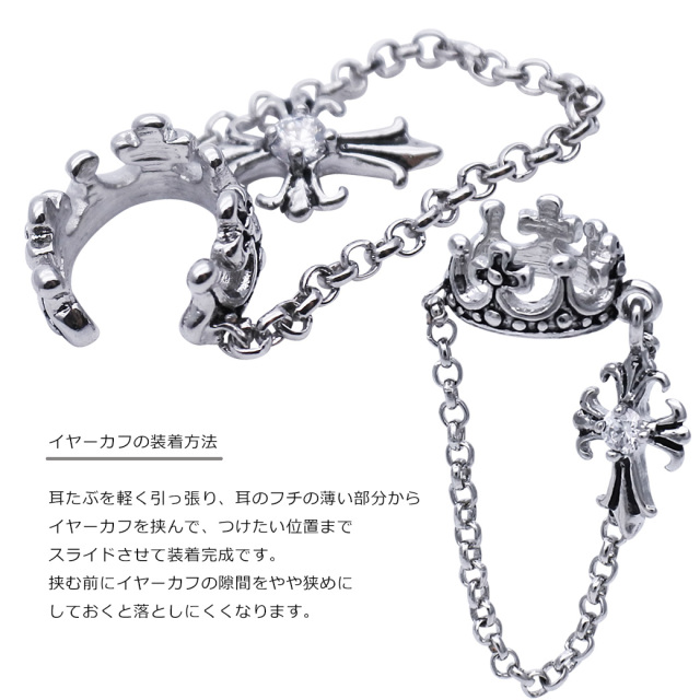 ゴシッククロス×チェーン穴あけ不要イヤーカフ 王冠 クラウン ユニセックス メンズ [右耳用] 0680
