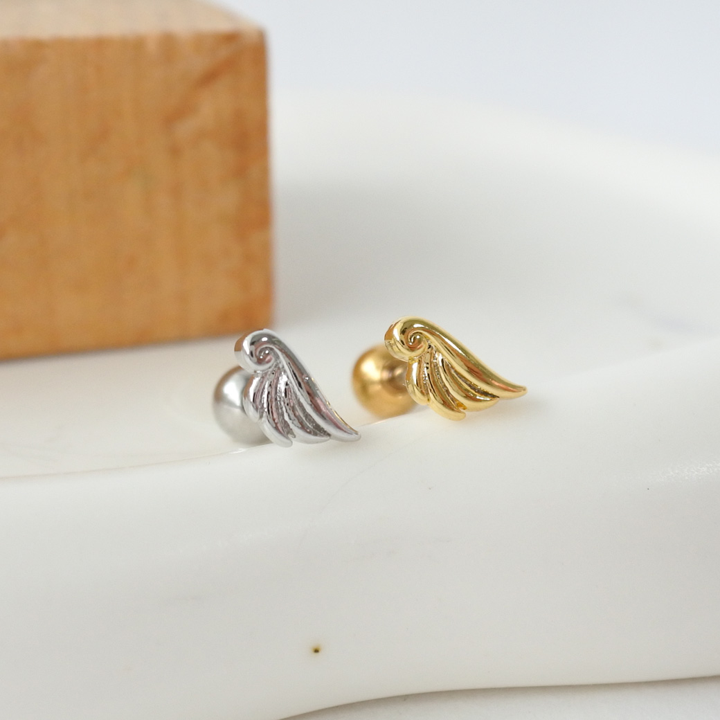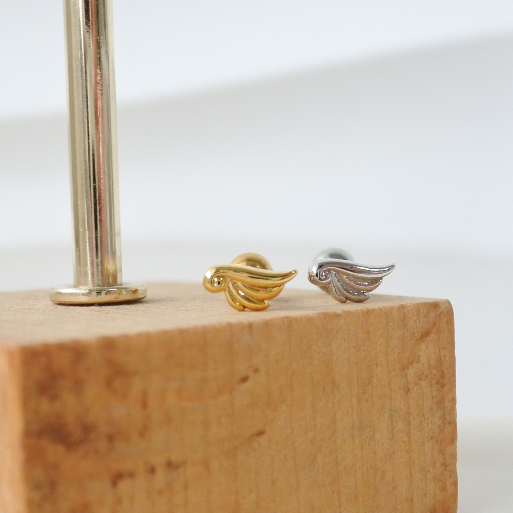 【3月新作】[14G 16G ]ツヤっと可愛いウィング モチーフ並べてつけても可愛いちび サイズストレート 軟骨ピアス ヘリックス ボディピアス 0807