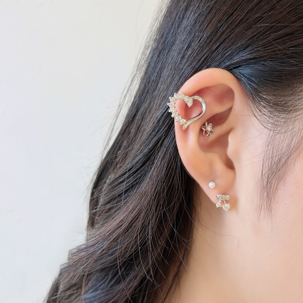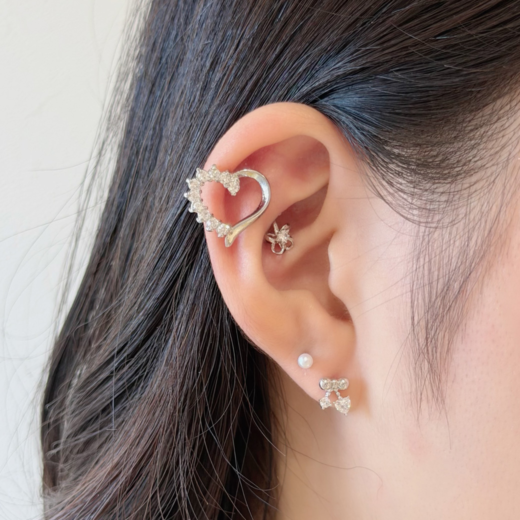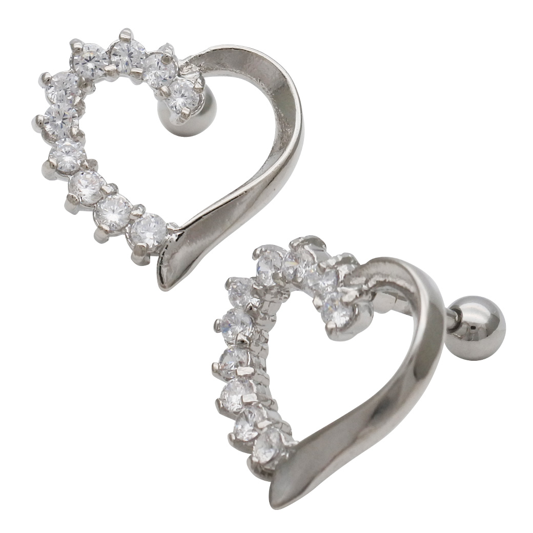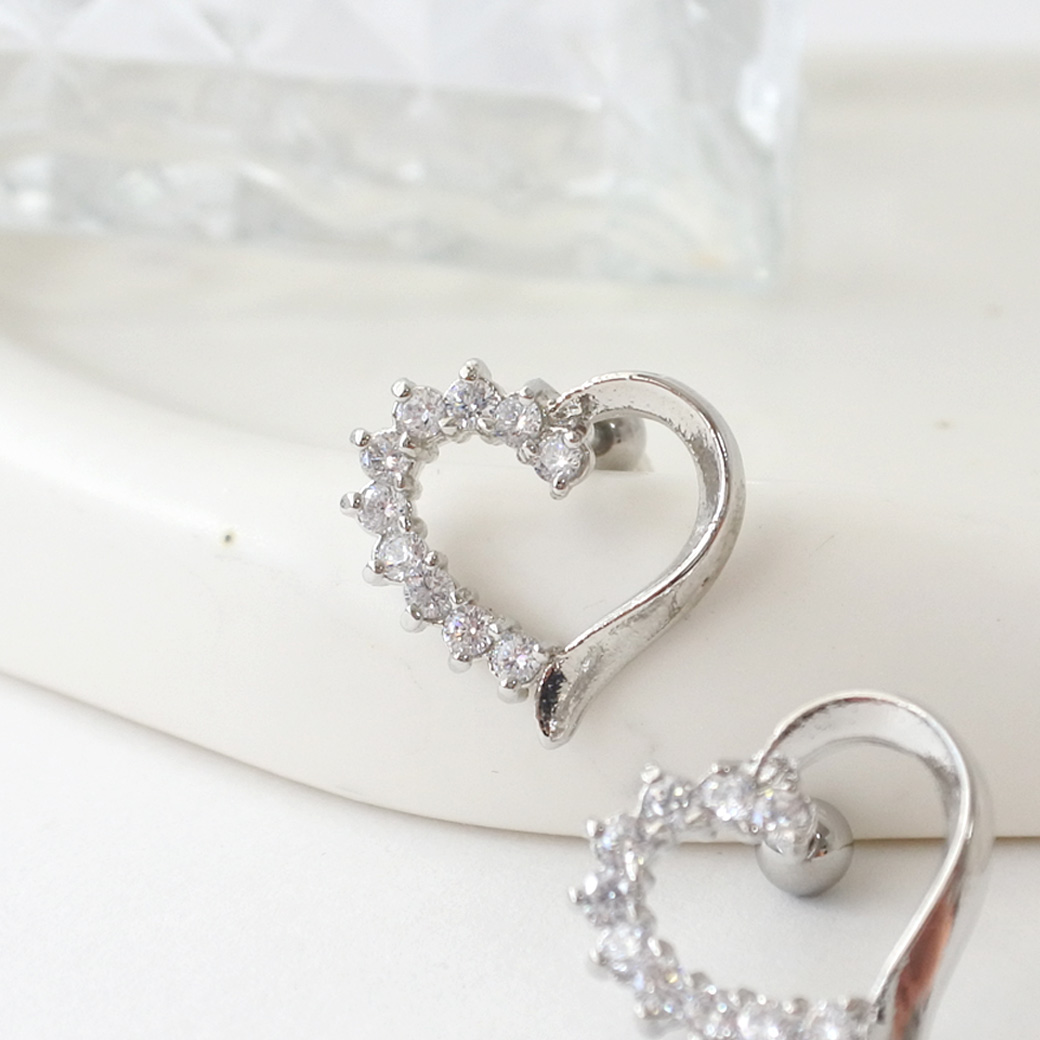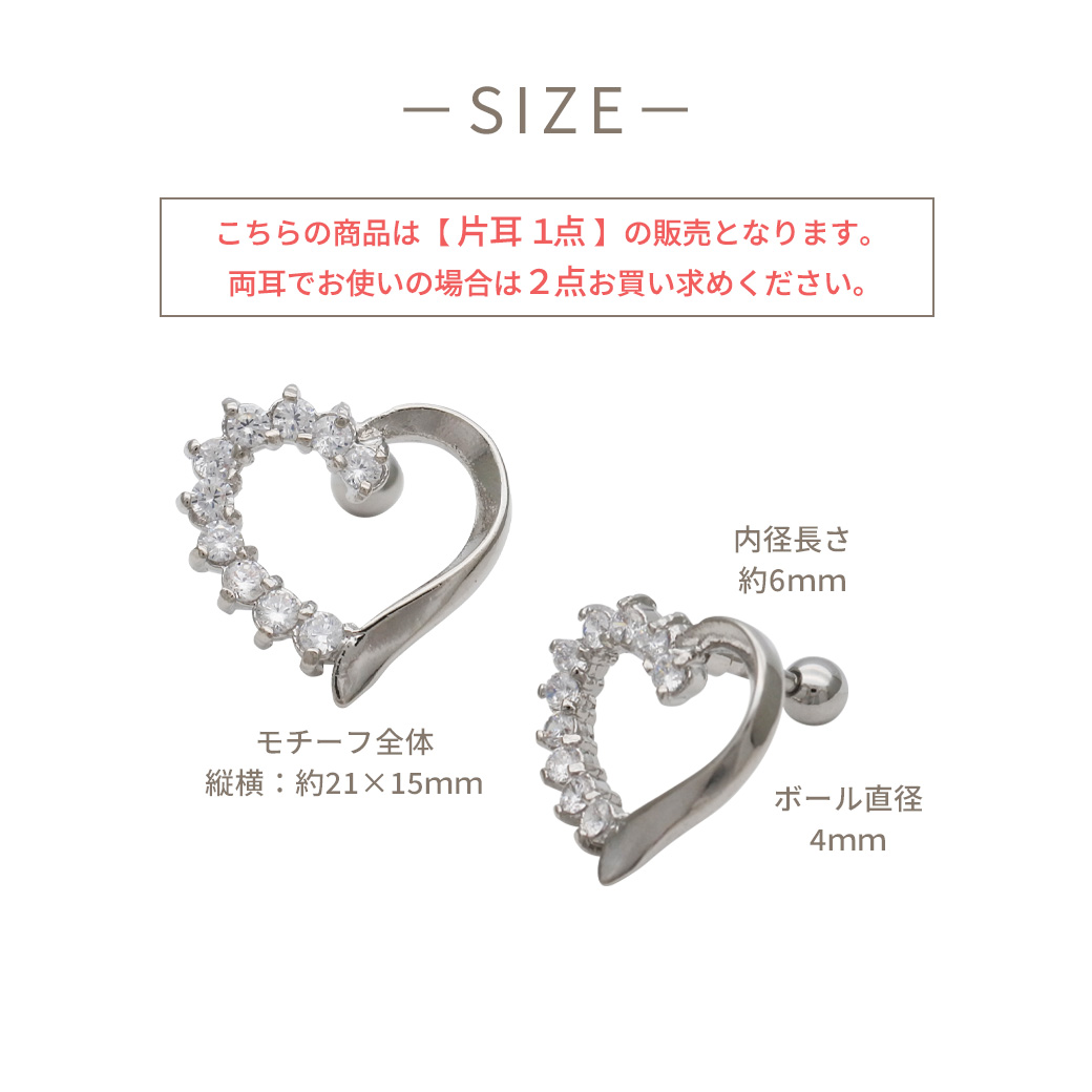 【3月新作】[14G 16G ]大人の耳元にそっと寄り添うキュービック が描く繊細なハート ラインストレート 軟骨ピアス ヘリックス ボディピアス 0809