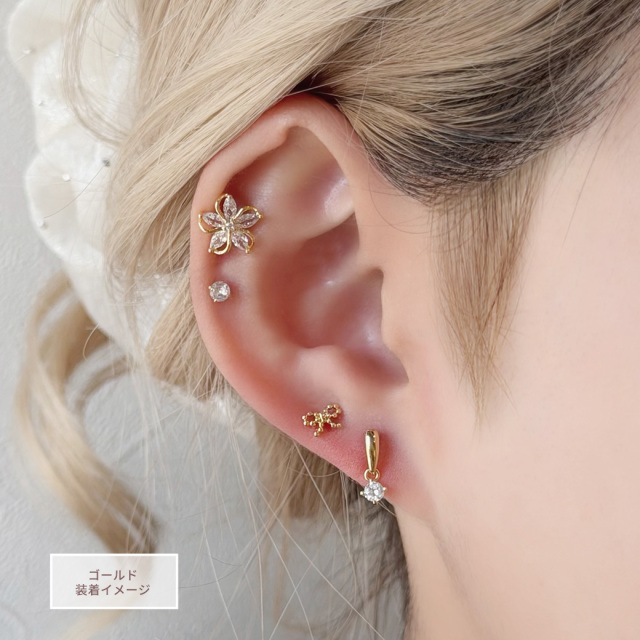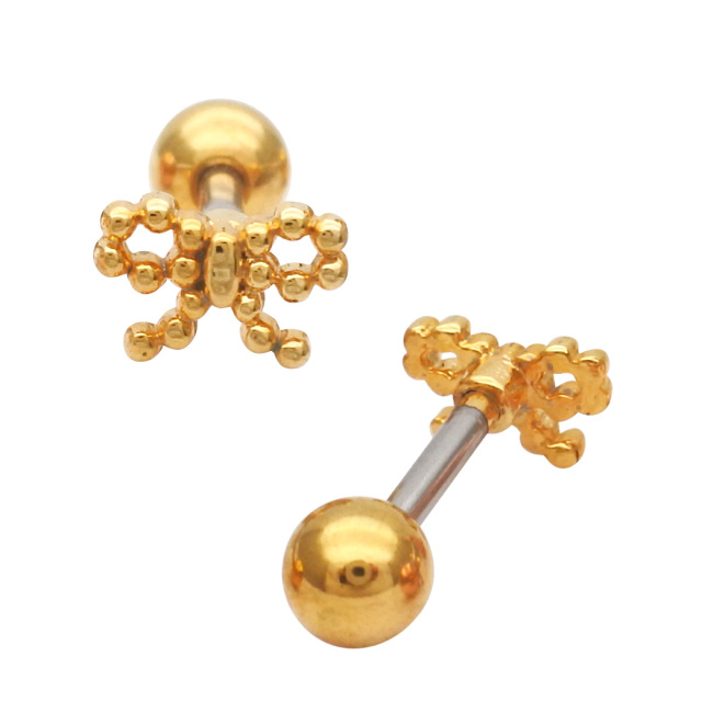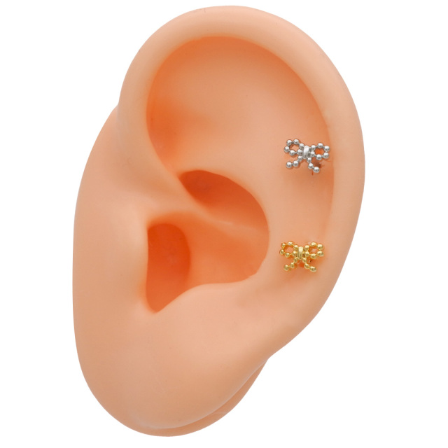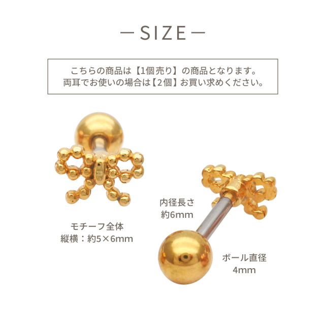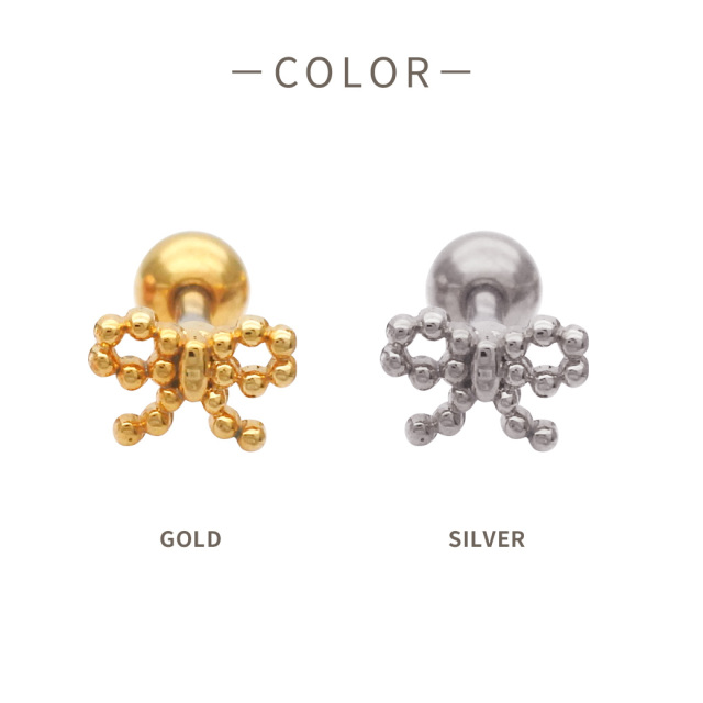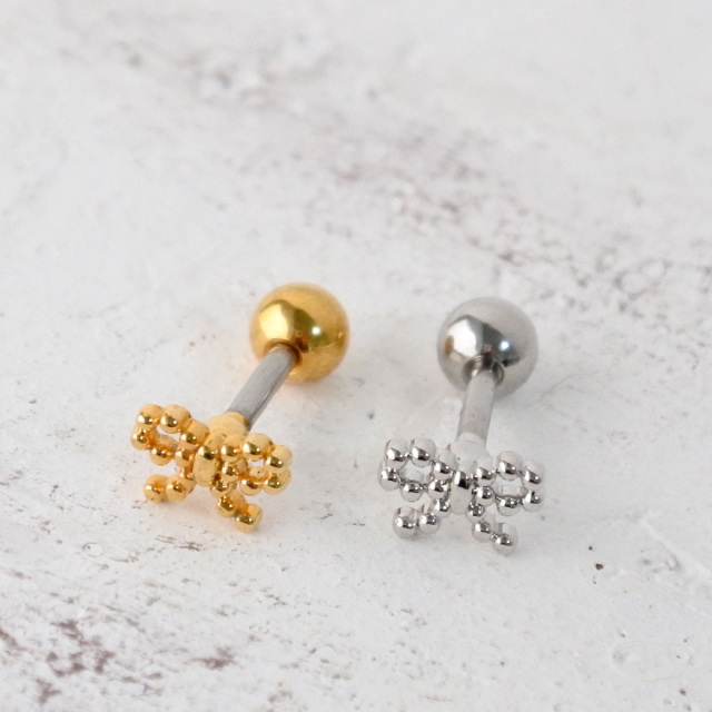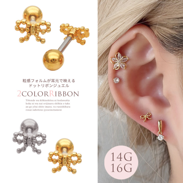 [14G 16G ]粒感フォルムが耳元で映えるドット リボン ジュエル ストレート 軟骨ピアス ヘリックス ボディピアス 0819
