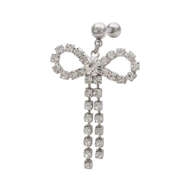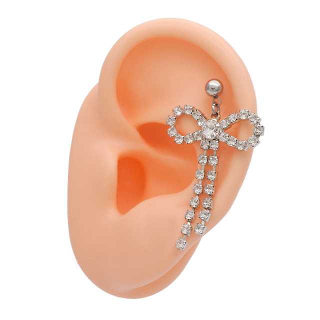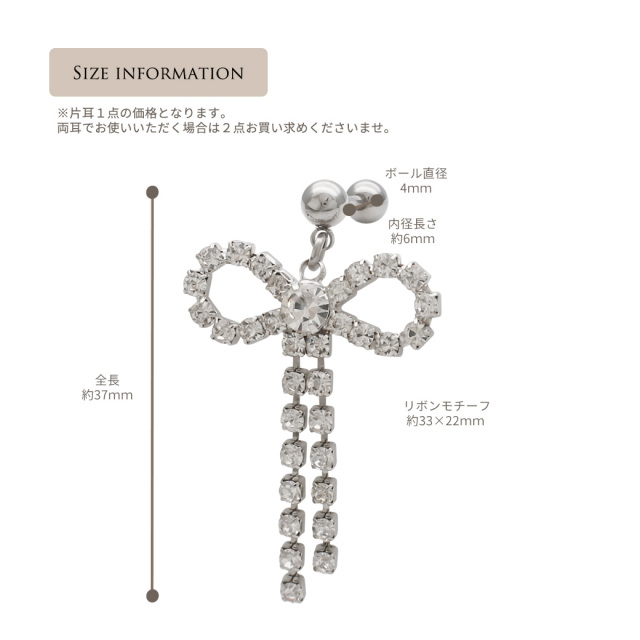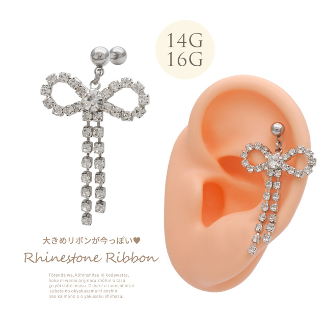 [14G 16G ]大きめ リボン が今っぽい ラインストーン ビジュー ストレート 軟骨ピアス ヘリックス ボディピアス 0820