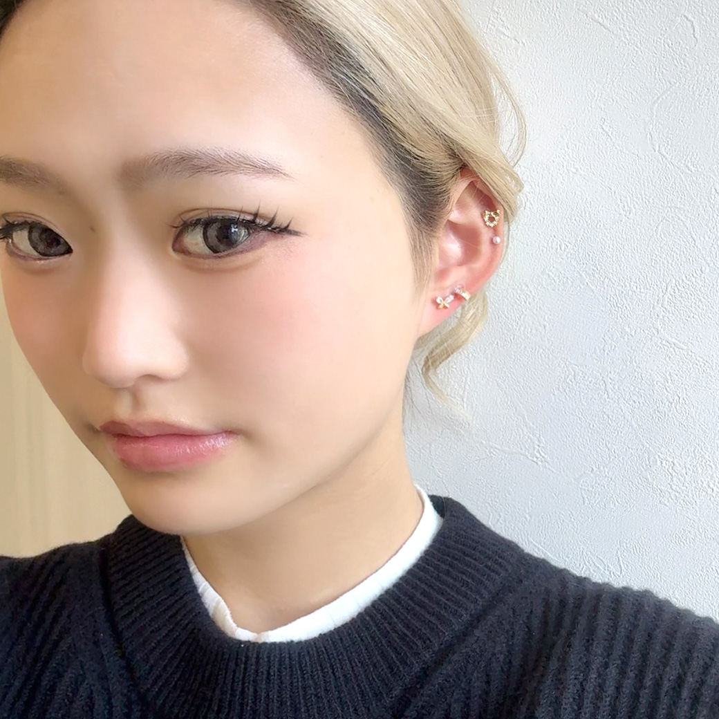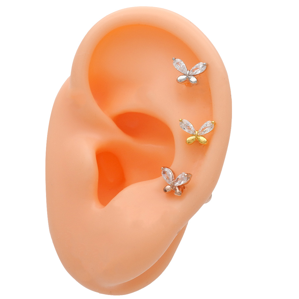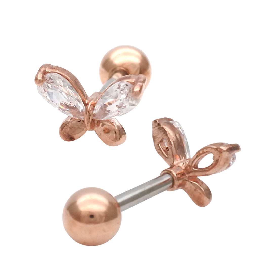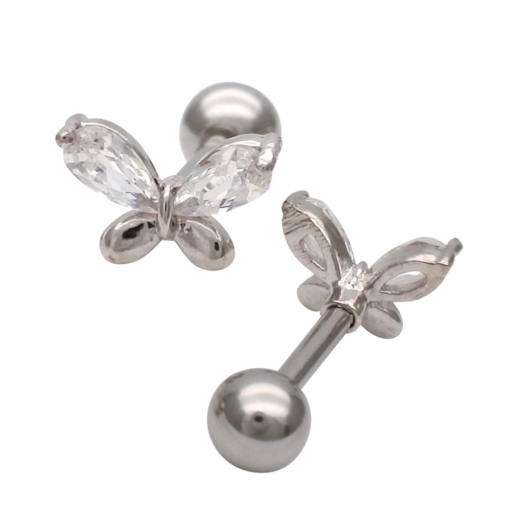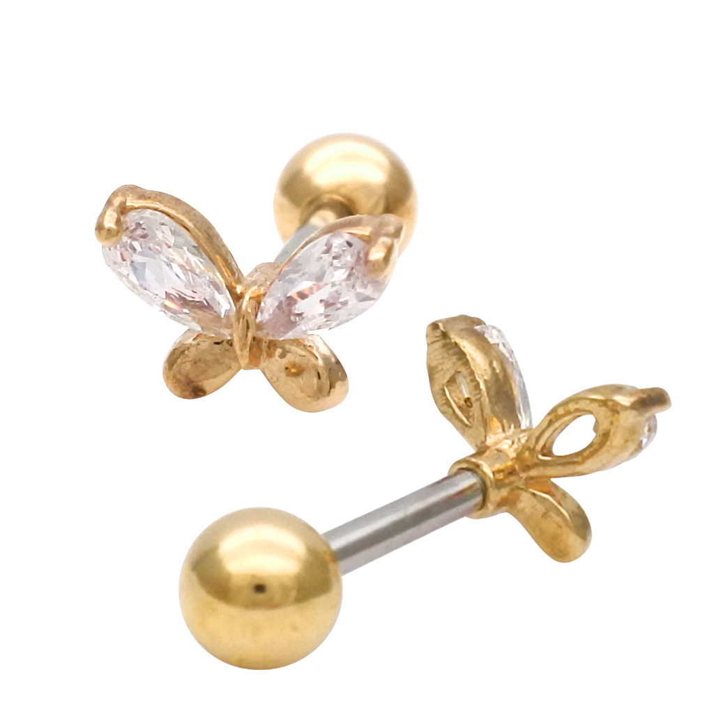 [14G 16G ]つるんとメタル がアクセント CZ 輝く 大人可愛い バタフライ デザイン ストレート 軟骨ピアス ヘリックス ボディピアス 0886