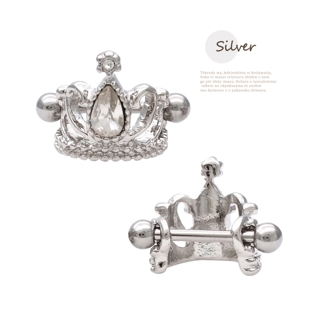 【4月再入荷】[16G]印象的なアクセントに可愛い。デザインの効いた王冠 モチーフ クラウン crown シールドバーベル ストレートバーベル 軟骨ピアス ヘリックス ボディピアス 0915