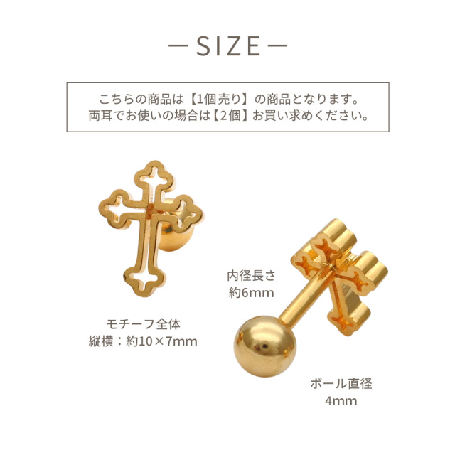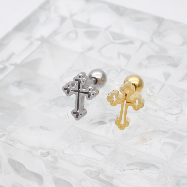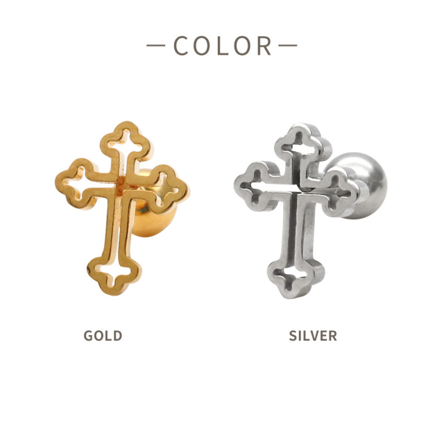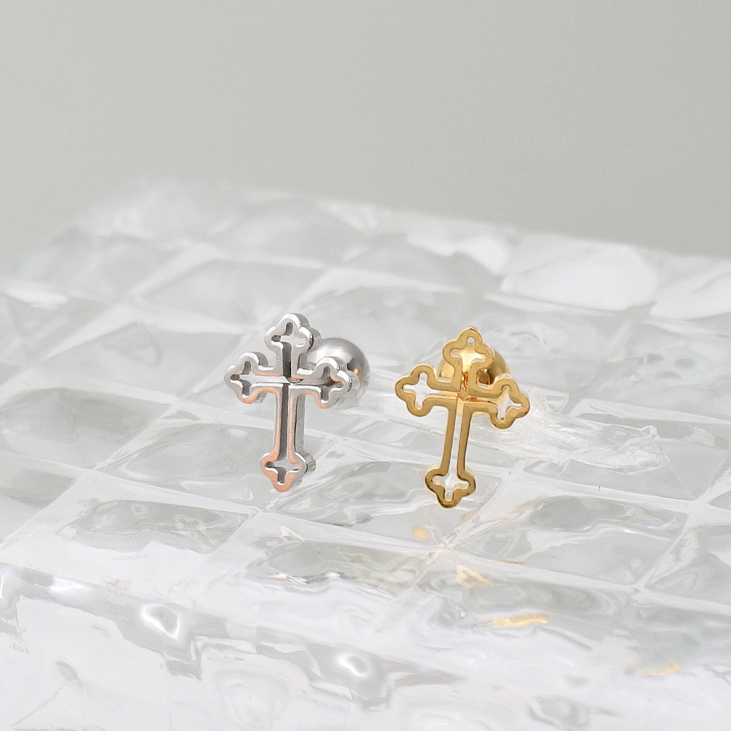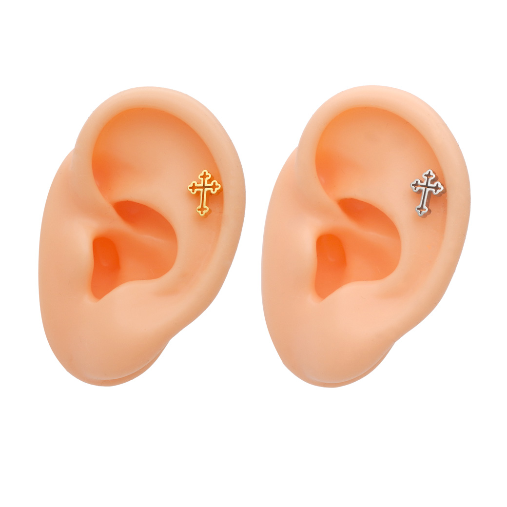 【1月新作】[16G ] 中抜きデザインが 軽やかな 印象を与える フラット メタル の クロス デザイン ストレート 軟骨ピアス ヘリックス ボディピアス 0953
