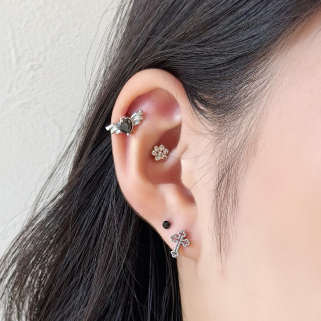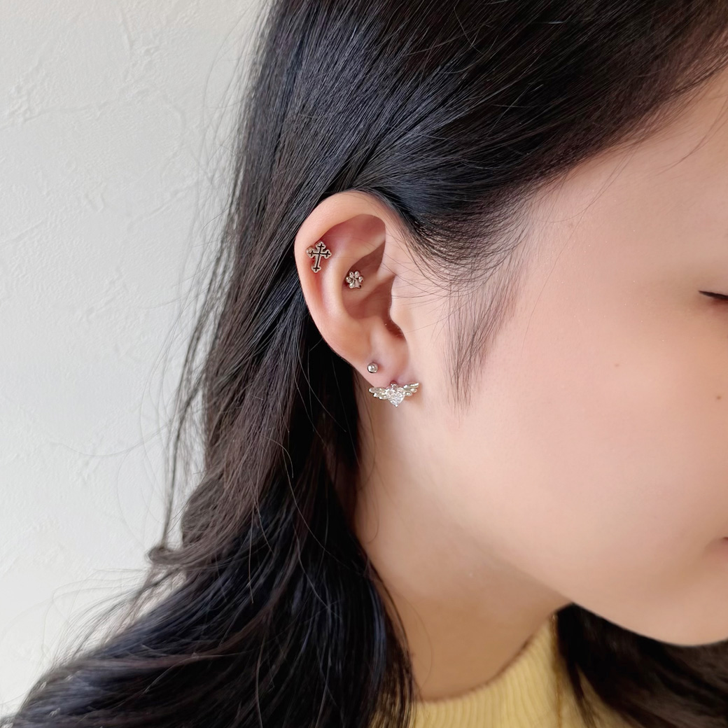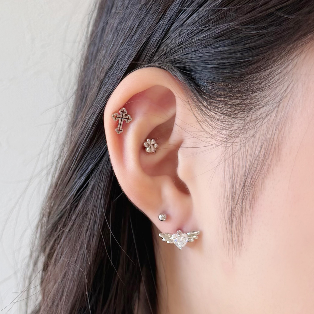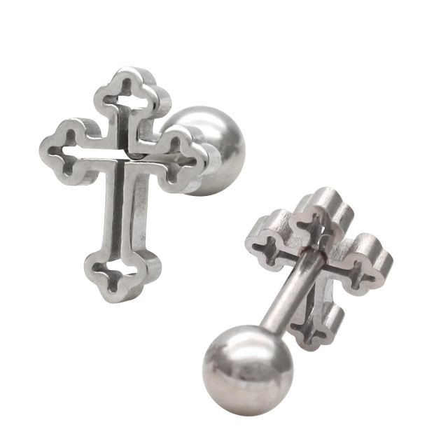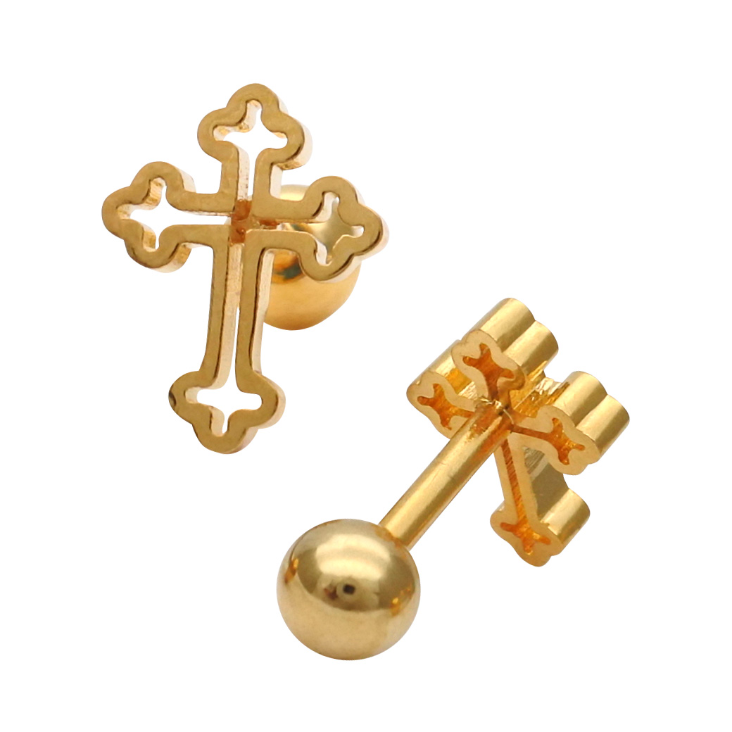 【1月新作】[16G ] 中抜きデザインが 軽やかな 印象を与える フラット メタル の クロス デザイン ストレート 軟骨ピアス ヘリックス ボディピアス 0953