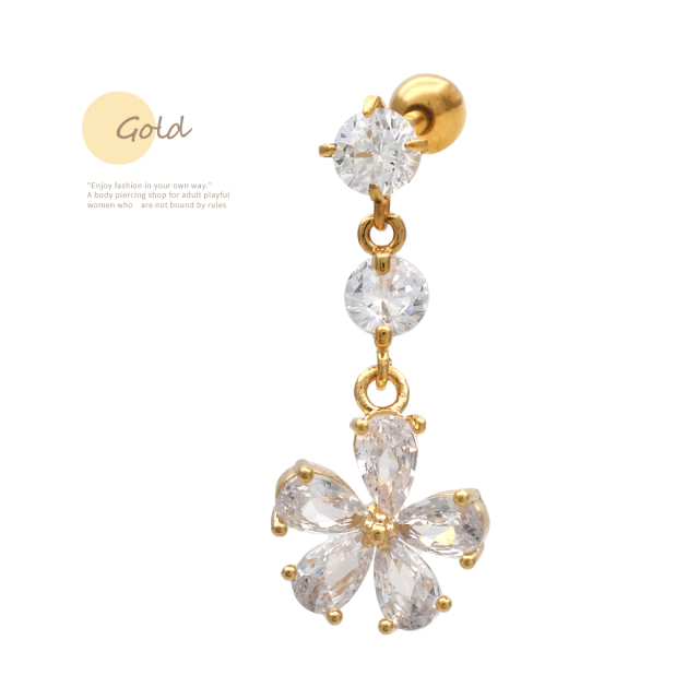 [14G 16G ]繊細に輝き、しなやかに揺れるキュービックジルコニア ロングデザイン チャーム 軟骨ピアス ヘリックス ボディピアス SS 0989