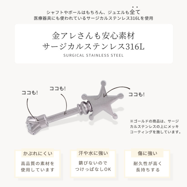 《素材》高品質サージカルステンレス316L/カラーコーティング