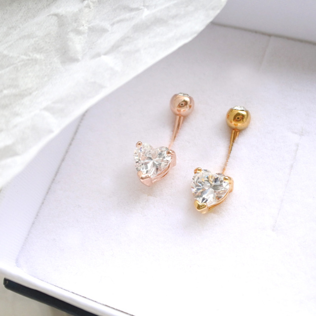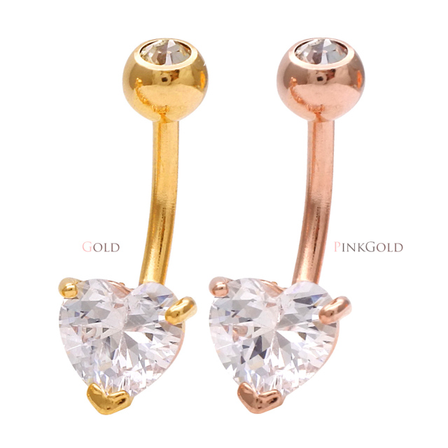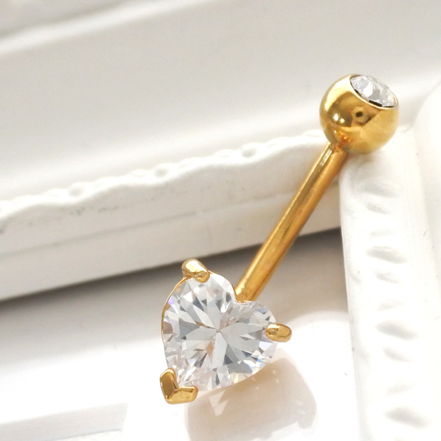 【4月再入荷】[14G ]上品な小さめサイズnew♪繊細に輝くキュービックジルコニア へそピアスボディピアス [ハート]1134